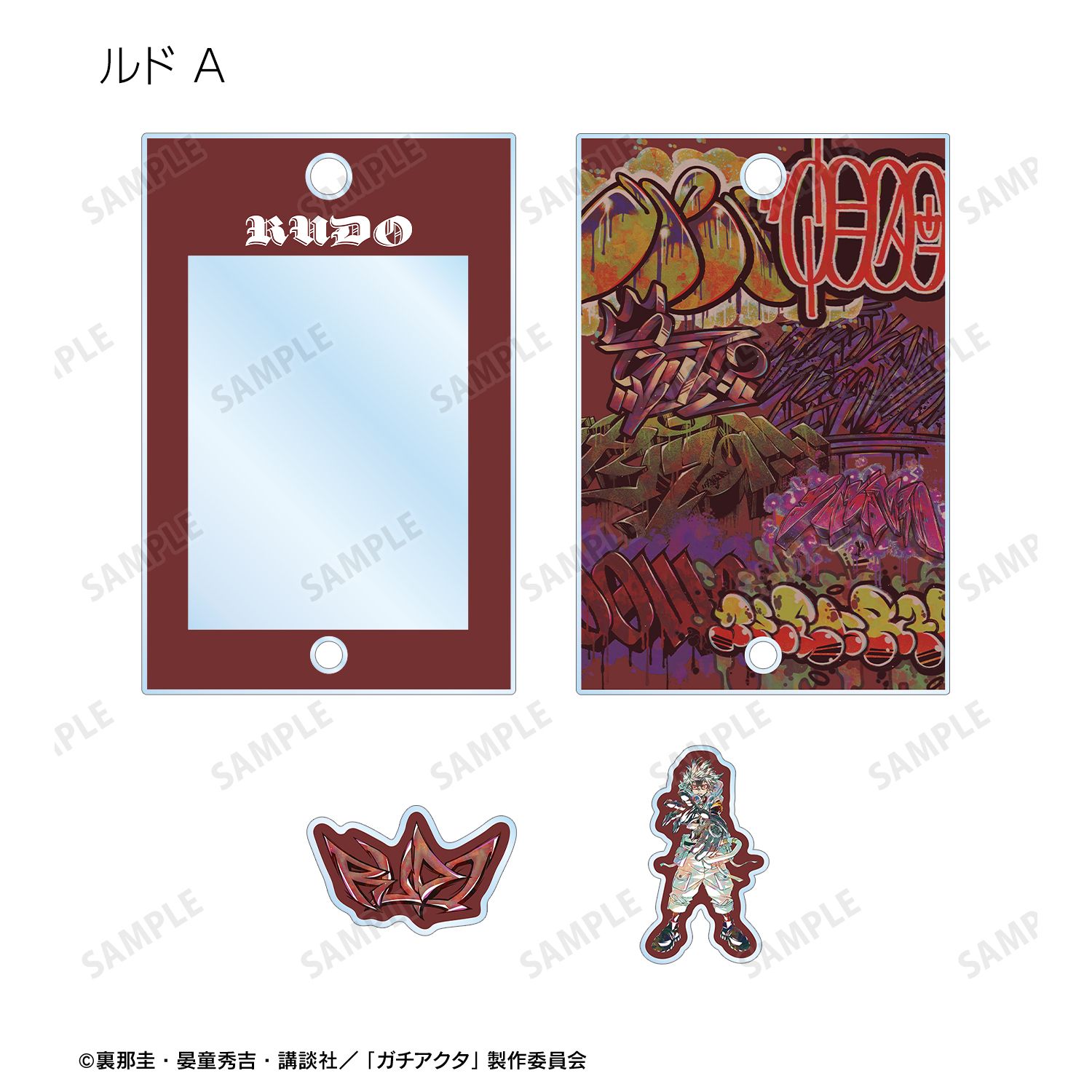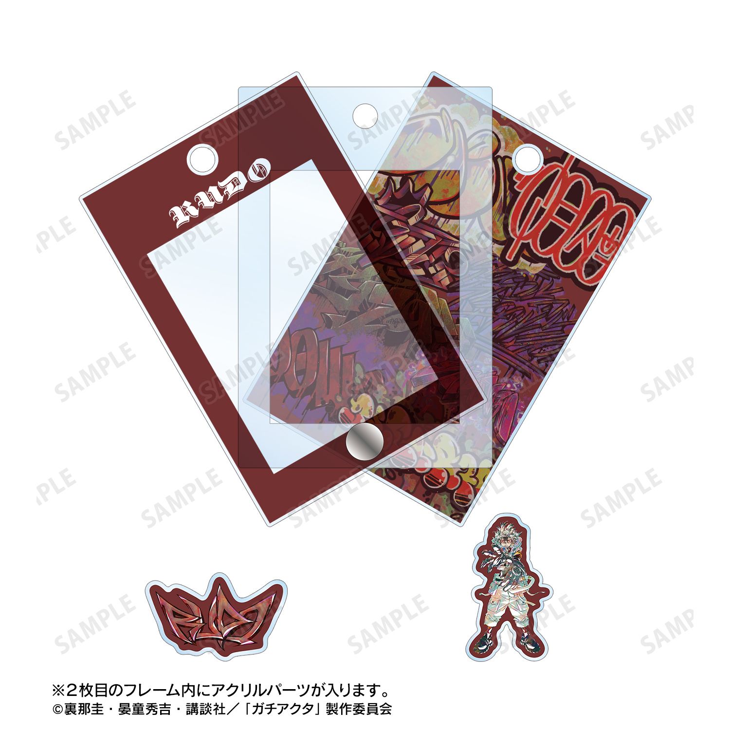 アクリルフレームの中にキャラクターや、グラフィティの小さなパーツが入っています。