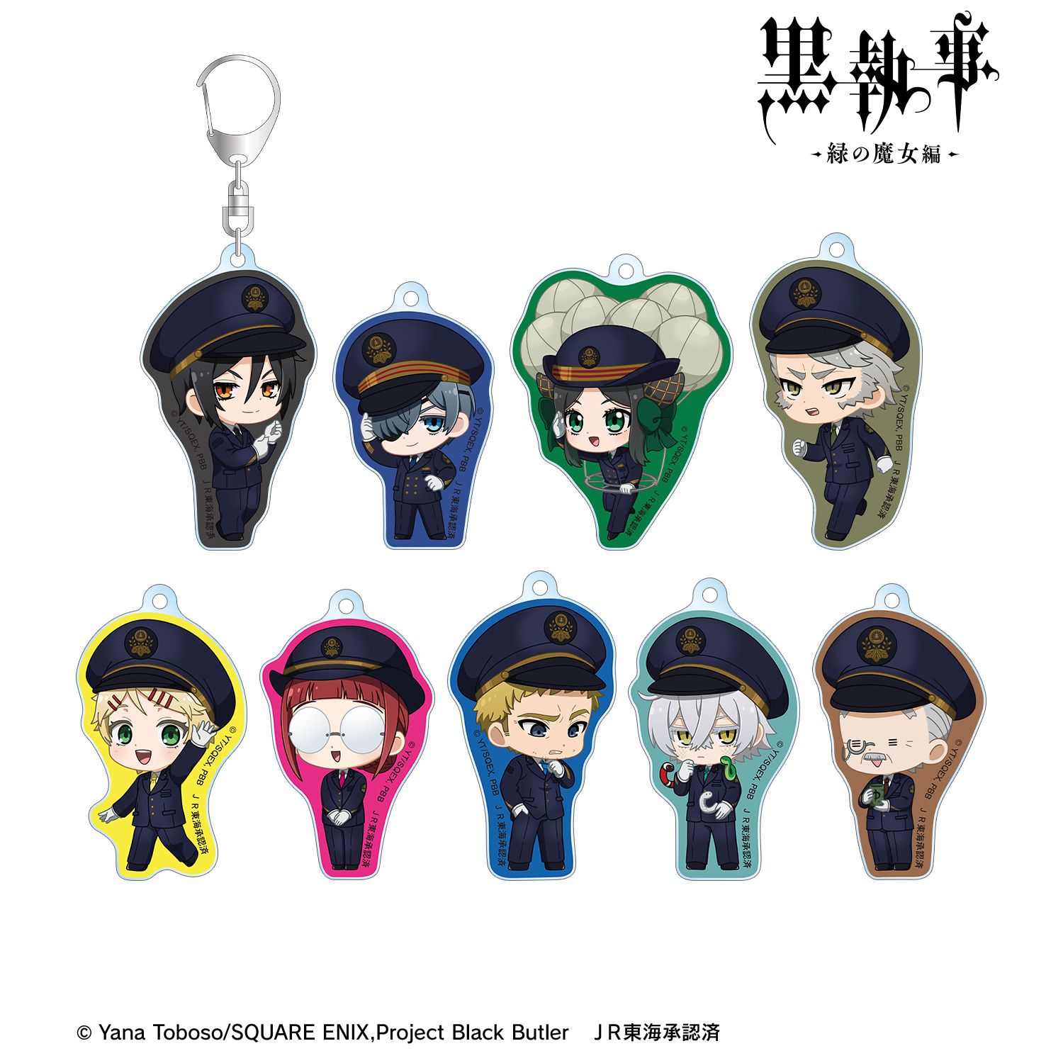 アニメ『黒執事 -緑の魔女編-』×「推し旅/JR東海」のコラボレーションアイテム「トレーディング ちびキャラ 駅員ver. アクリルキーホルダー」の登場です。