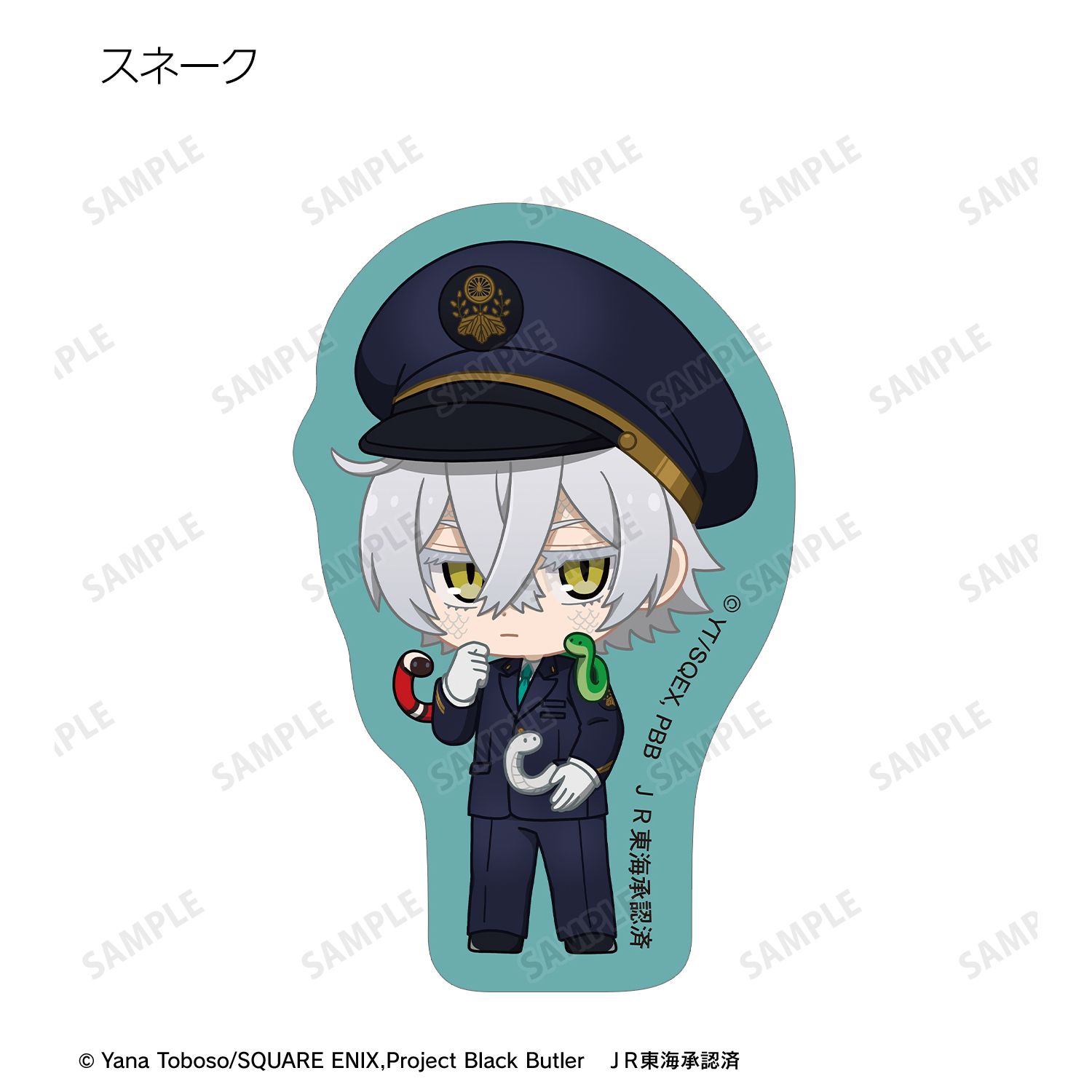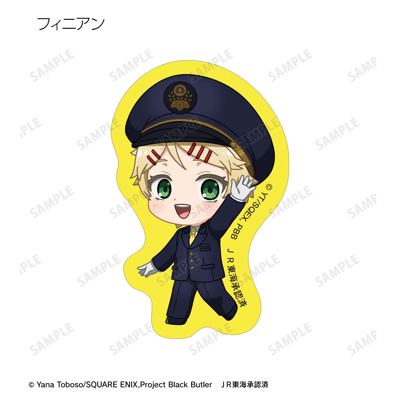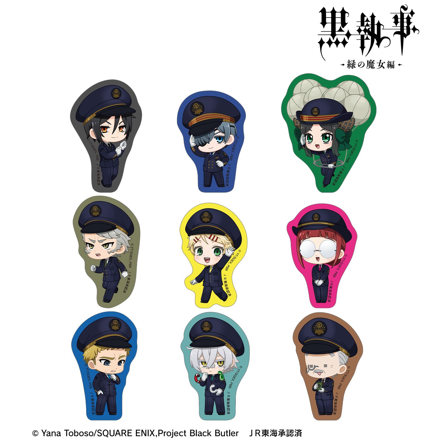 アニメ『黒執事 -緑の魔女編-』×「推し旅/JR東海」のコラボレーションアイテム「ちびキャラ 駅員ver. フレークシール」の登場です。