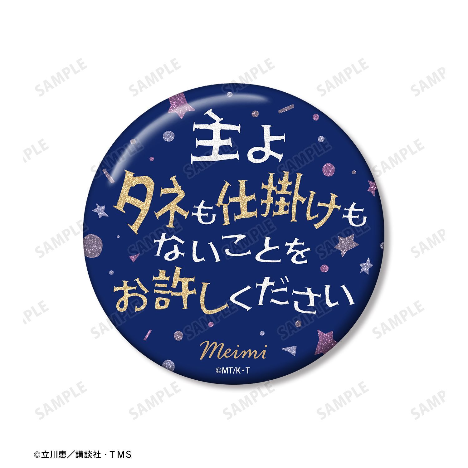 セリフ缶バッジにはグリッター加工を施しています。