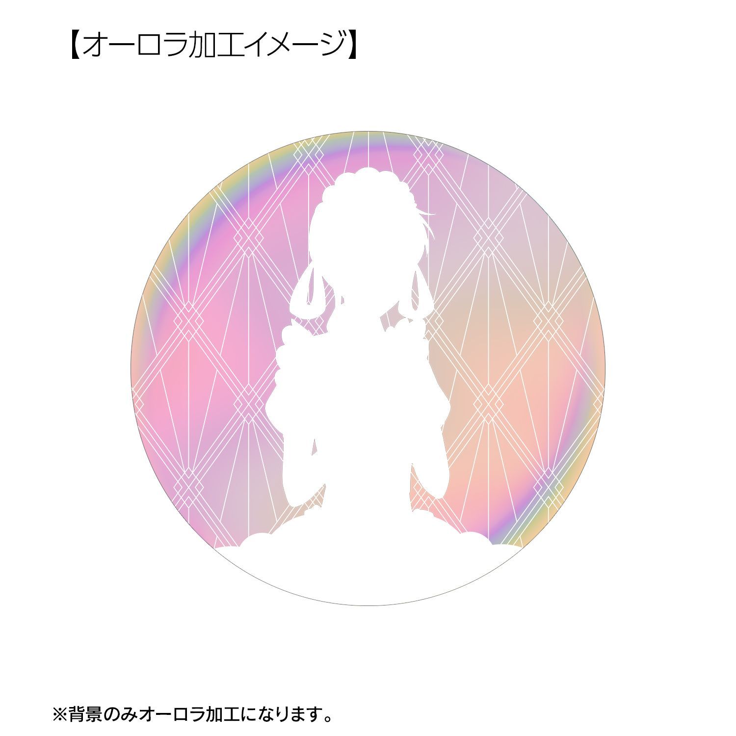 描き下ろしイラストを、オーロラ加工を施した缶バッジに仕上げました。