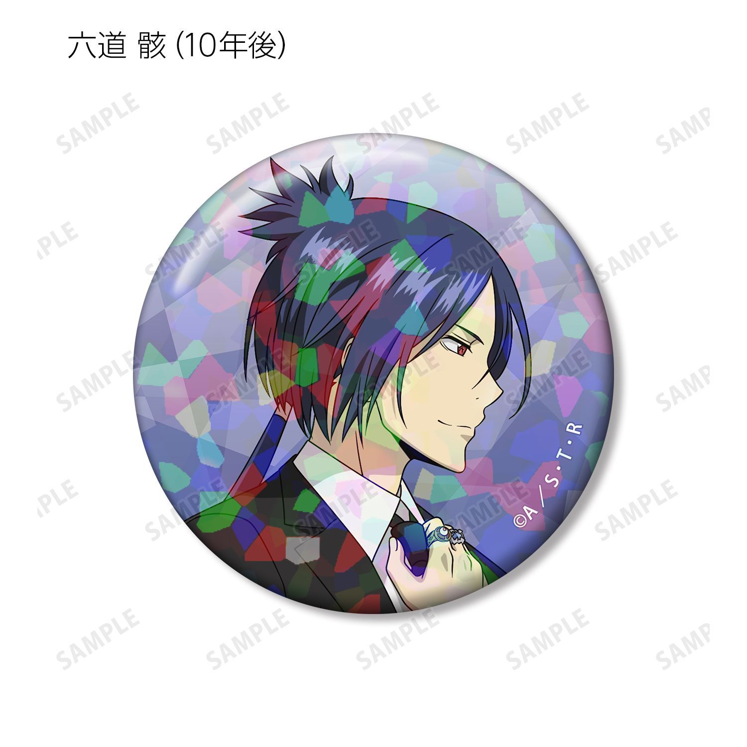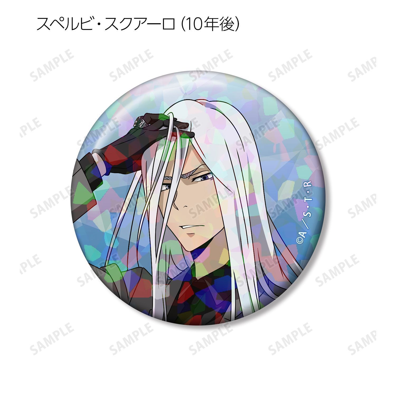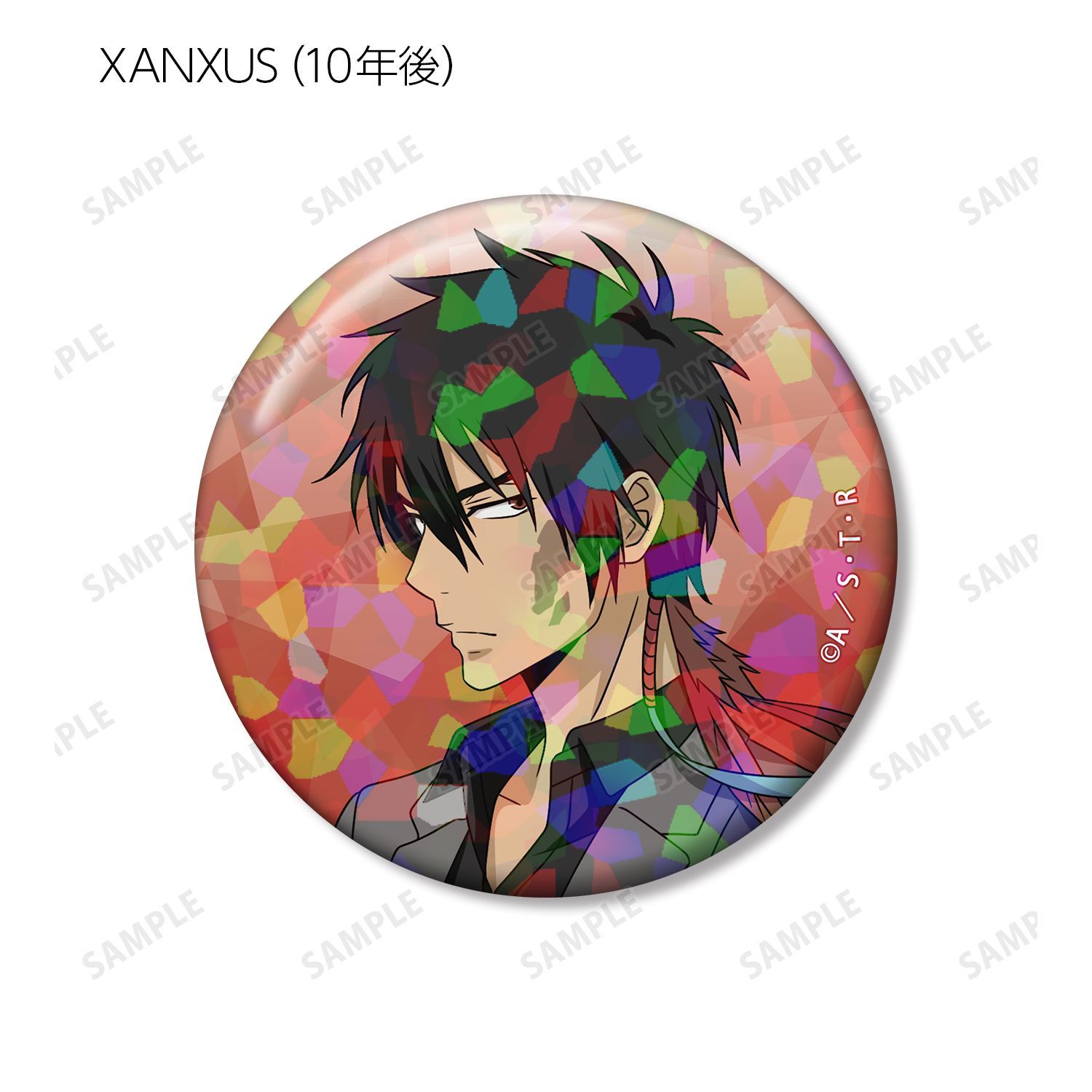 リボーン、沢田 綱吉、獄寺 隼人(10年後)、山本 武(10年後)、雲雀 恭弥(10年後)、六道 骸(10年後)、XANXUS(10年後)、スペルビ・スクアーロ(10年後)、ベルフェゴール(10年後)、フラン、白蘭の描き下ろしイラストをホログラム加工を施した缶バッジに仕上げました。