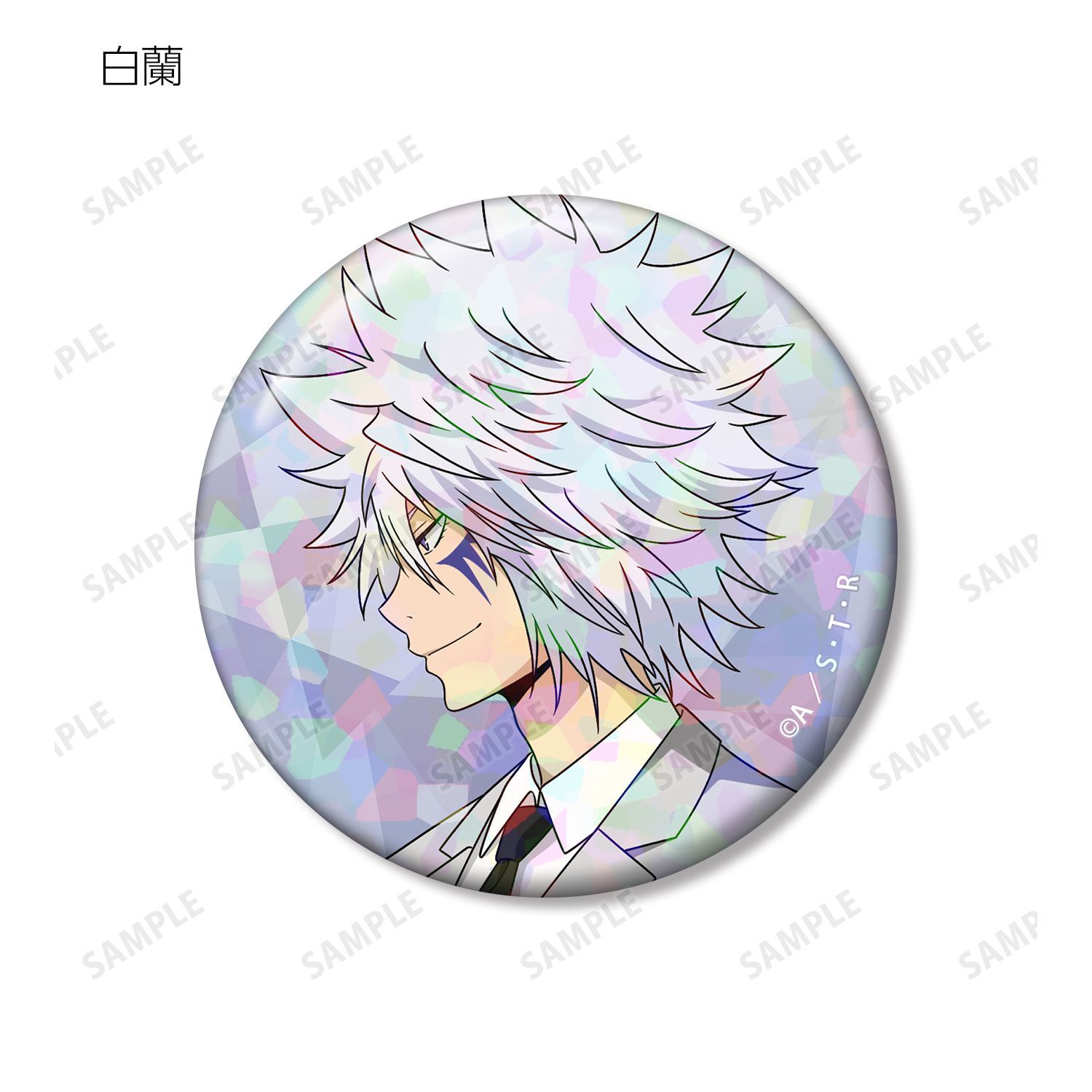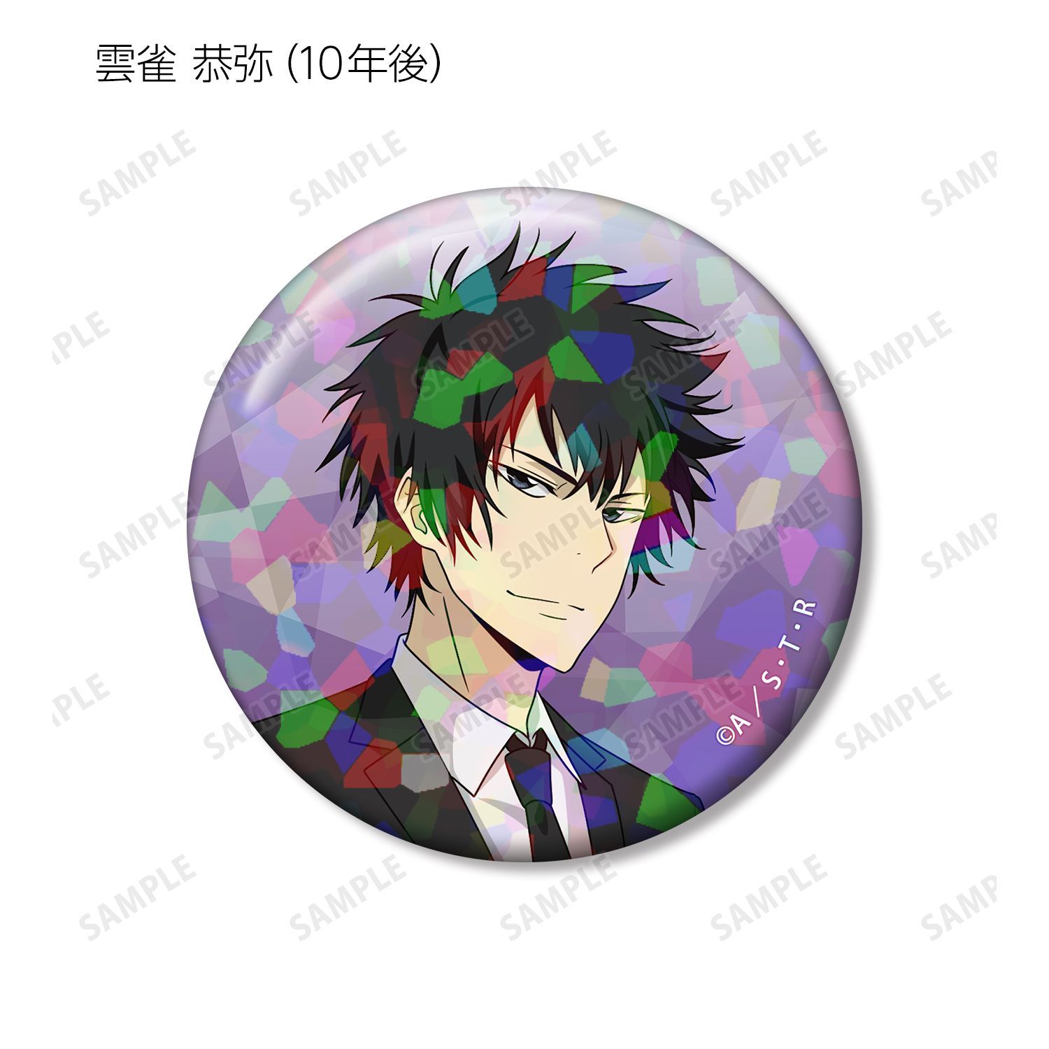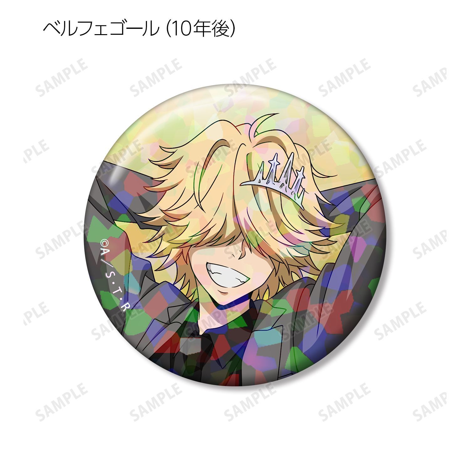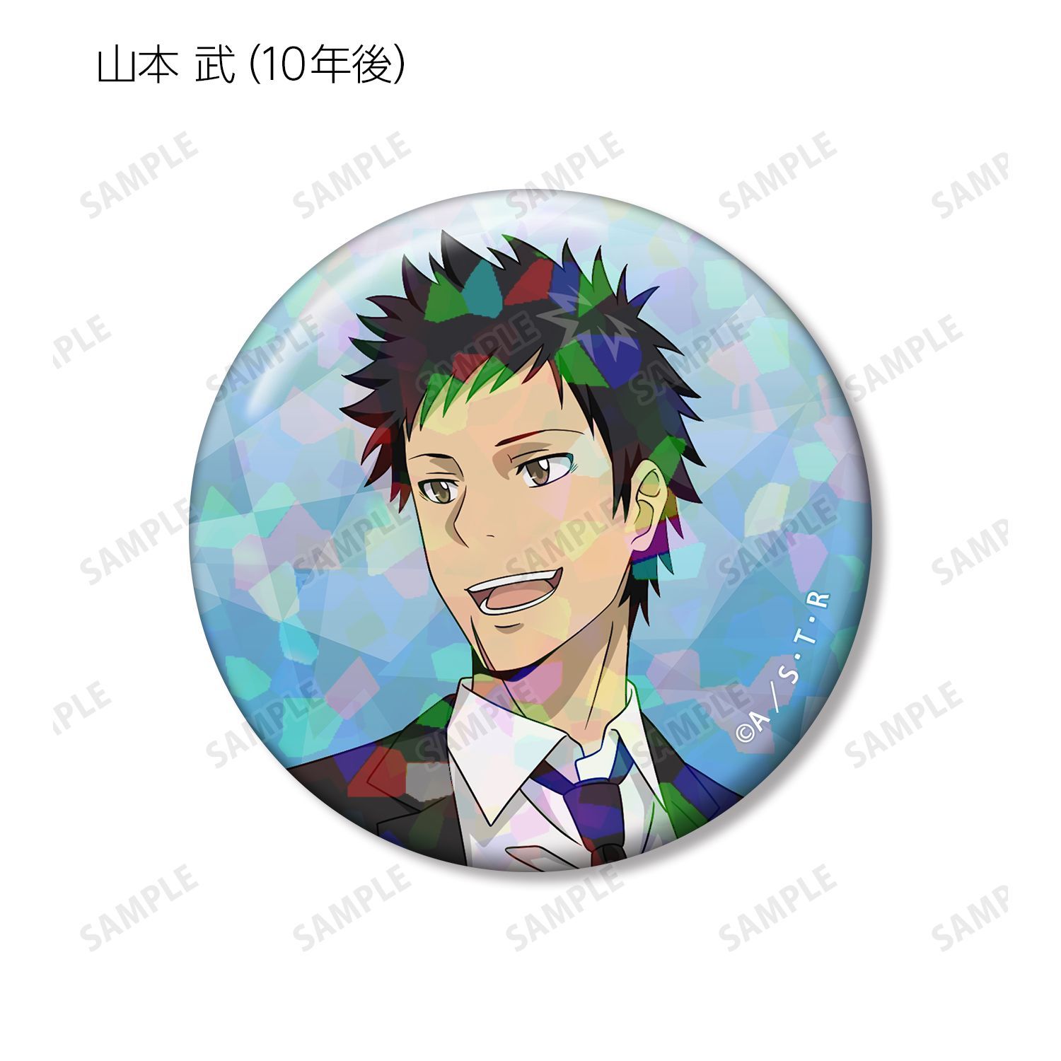 リボーン、沢田 綱吉、獄寺 隼人(10年後)、山本 武(10年後)、雲雀 恭弥(10年後)、六道 骸(10年後)、XANXUS(10年後)、スペルビ・スクアーロ(10年後)、ベルフェゴール(10年後)、フラン、白蘭の描き下ろしイラストをホログラム加工を施した缶バッジに仕上げました。
