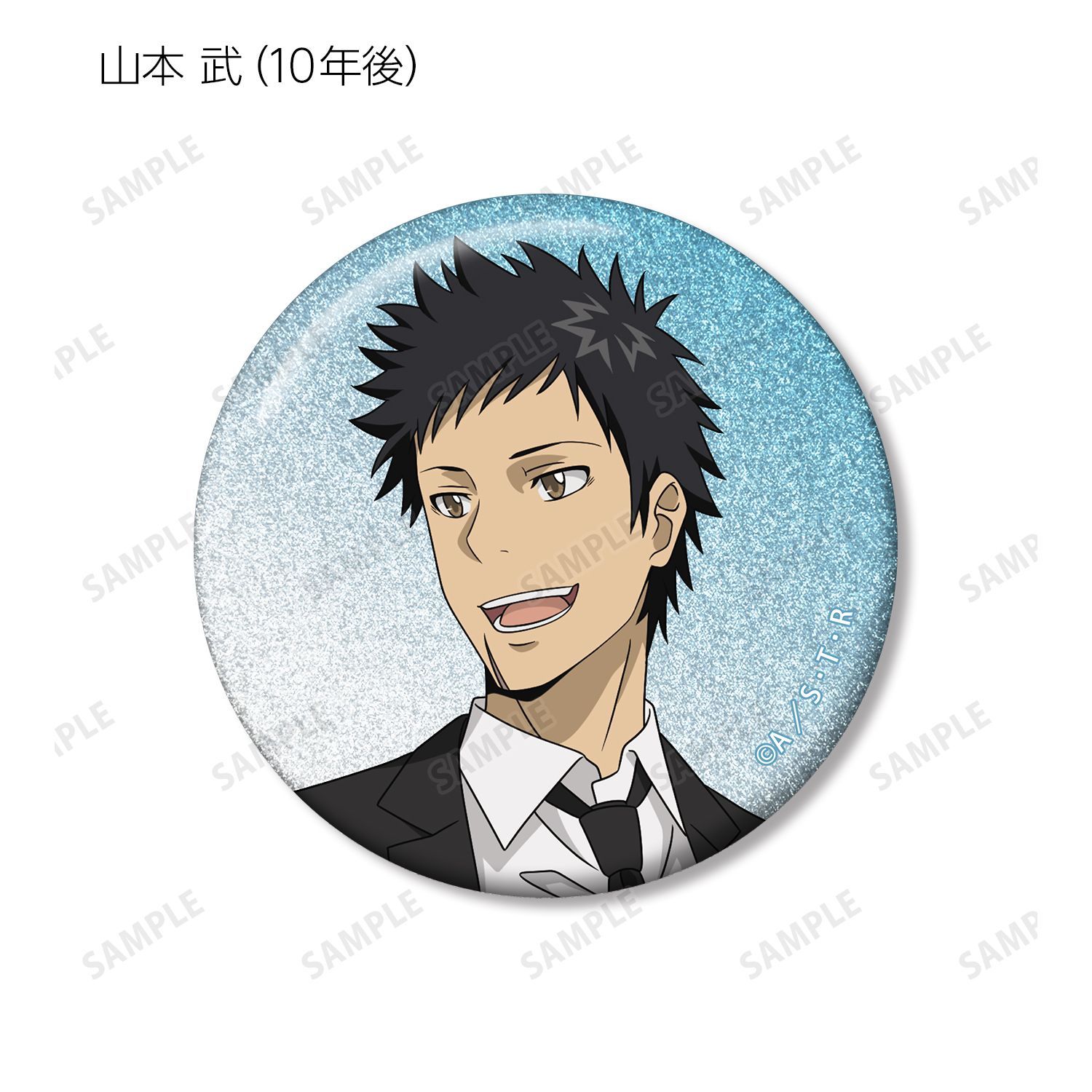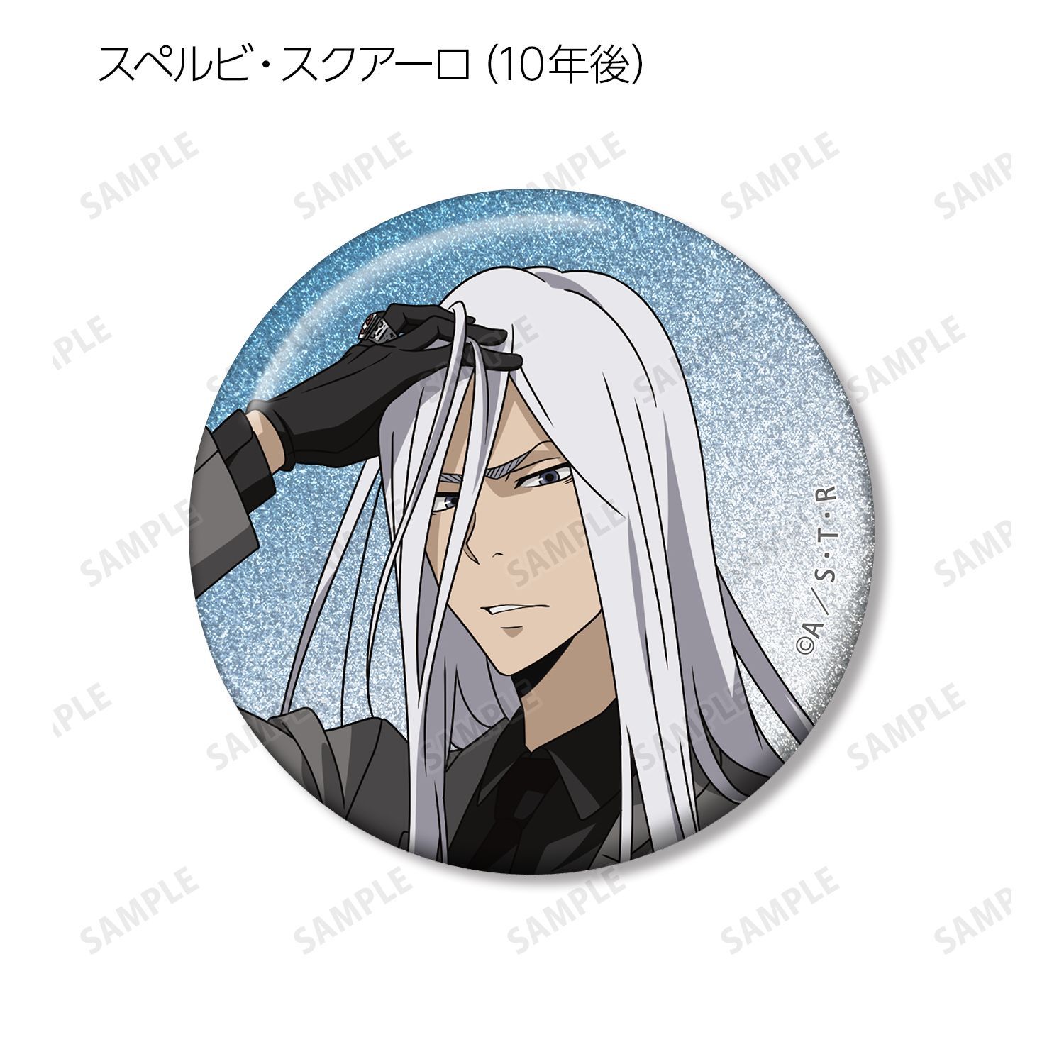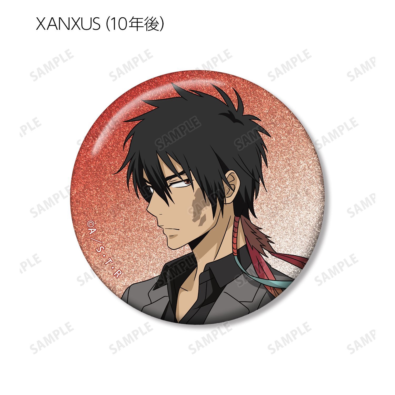 リボーン、沢田 綱吉、獄寺 隼人(10年後)、山本 武(10年後)、雲雀 恭弥(10年後)、六道 骸(10年後)、XANXUS(10年後)、スペルビ・スクアーロ(10年後)、ベルフェゴール(10年後)、フラン、白蘭の描き下ろしイラストをグリッター加工を施した缶バッジに仕上げました。