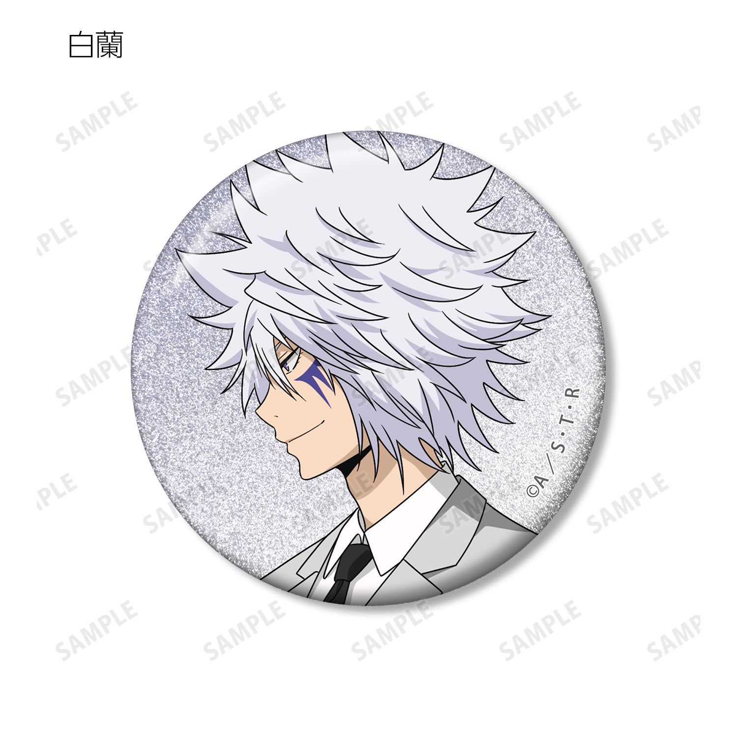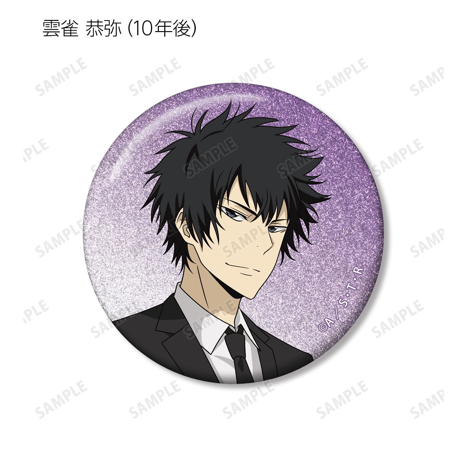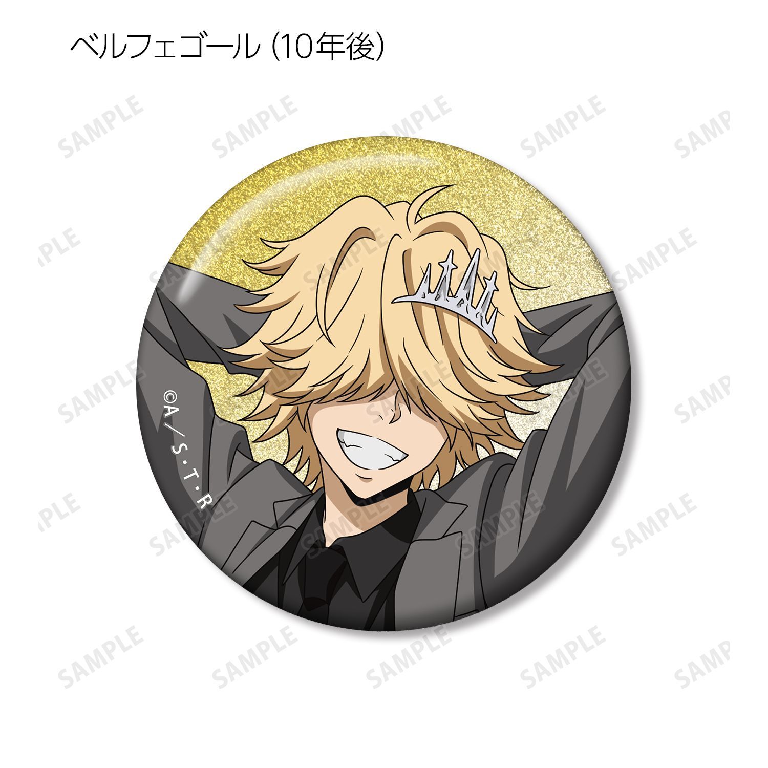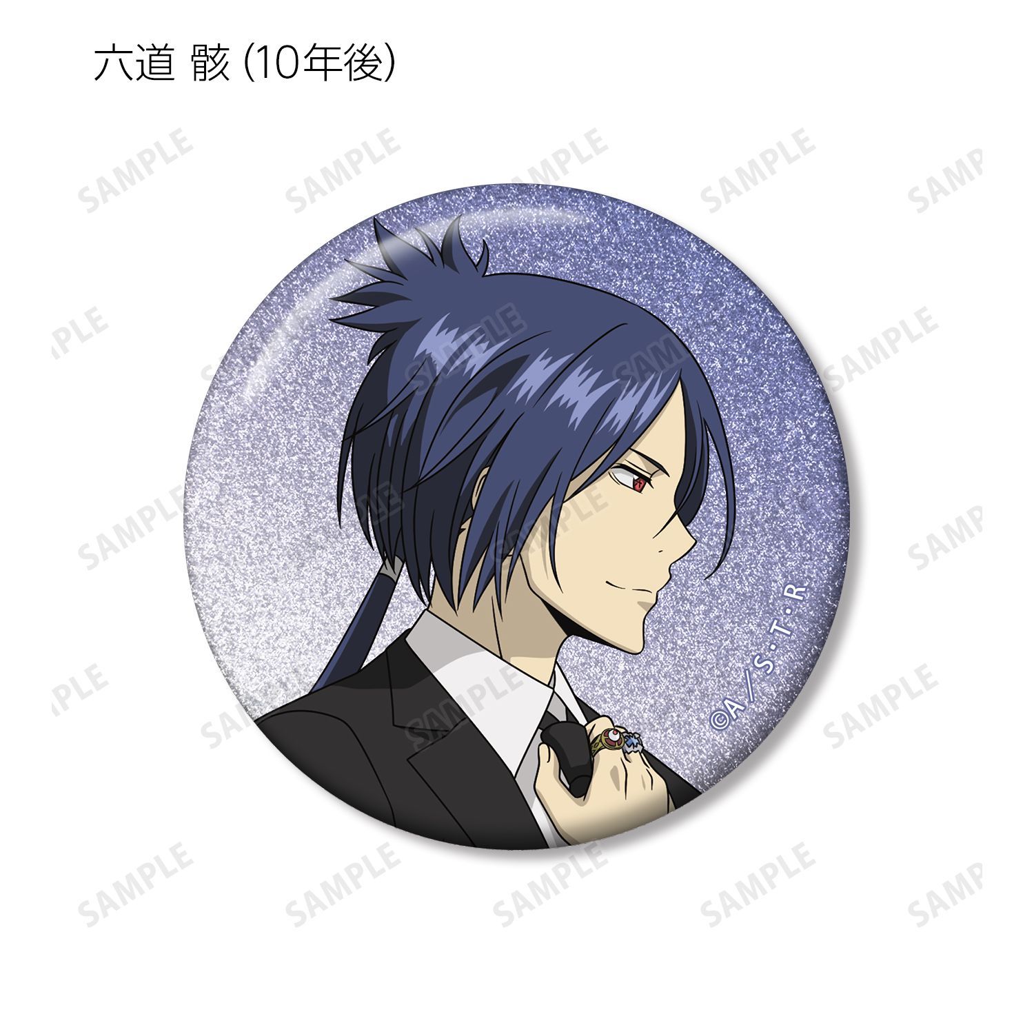 リボーン、沢田 綱吉、獄寺 隼人(10年後)、山本 武(10年後)、雲雀 恭弥(10年後)、六道 骸(10年後)、XANXUS(10年後)、スペルビ・スクアーロ(10年後)、ベルフェゴール(10年後)、フラン、白蘭の描き下ろしイラストをグリッター加工を施した缶バッジに仕上げました。