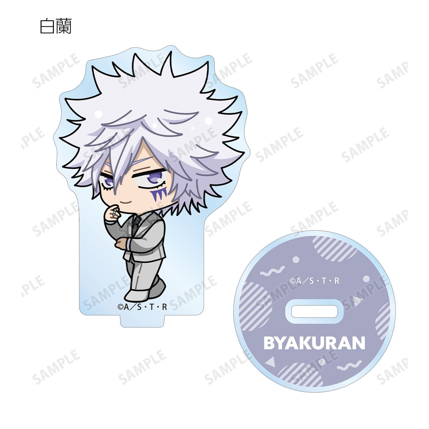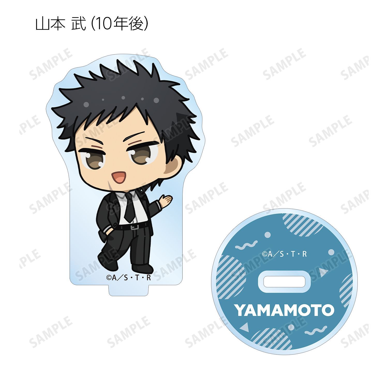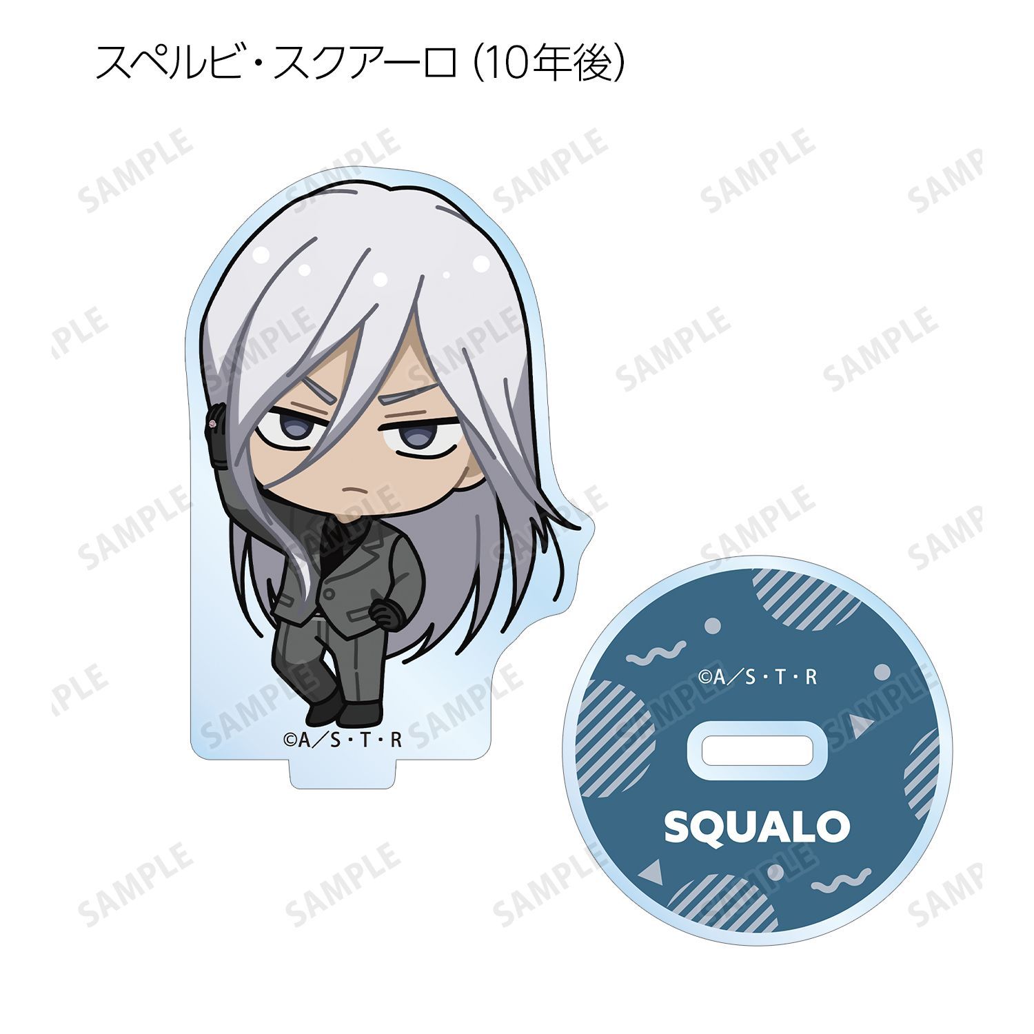 リボーン、沢田 綱吉、獄寺 隼人(10年後)、山本 武(10年後)、雲雀 恭弥(10年後)、六道 骸(10年後)、XANXUS(10年後)、スペルビ・スクアーロ(10年後)、ベルフェゴール(10年後)、フラン、白蘭の描き起こしちびキャライラストをメインにデザインし、アクリルスタンドに仕上げました。
