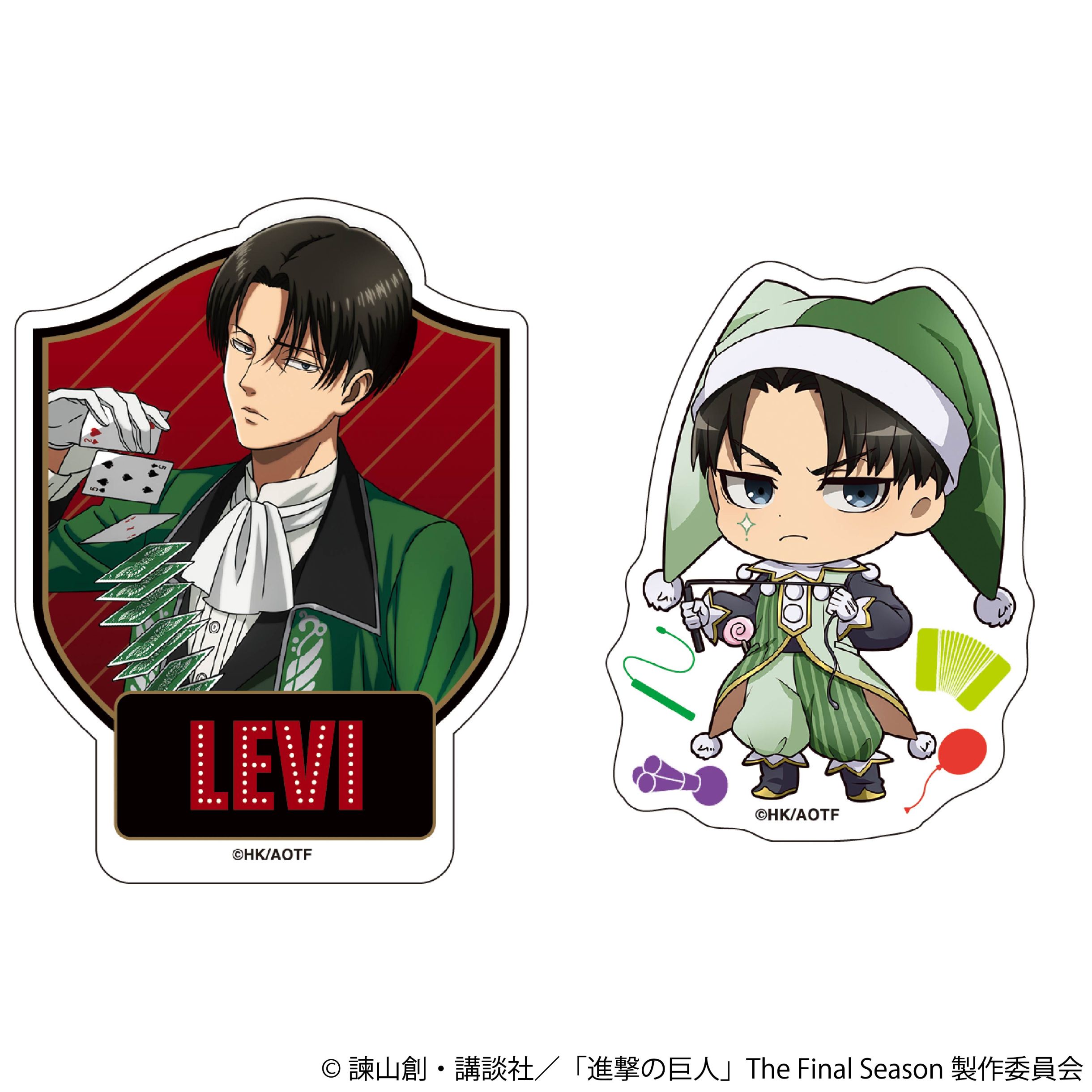 TVアニメ『進撃の巨人』より、煌びやかなマジシャンと可愛いピエロの衣装に身を包んだハンジがセットになったステッカーセットが登壇!