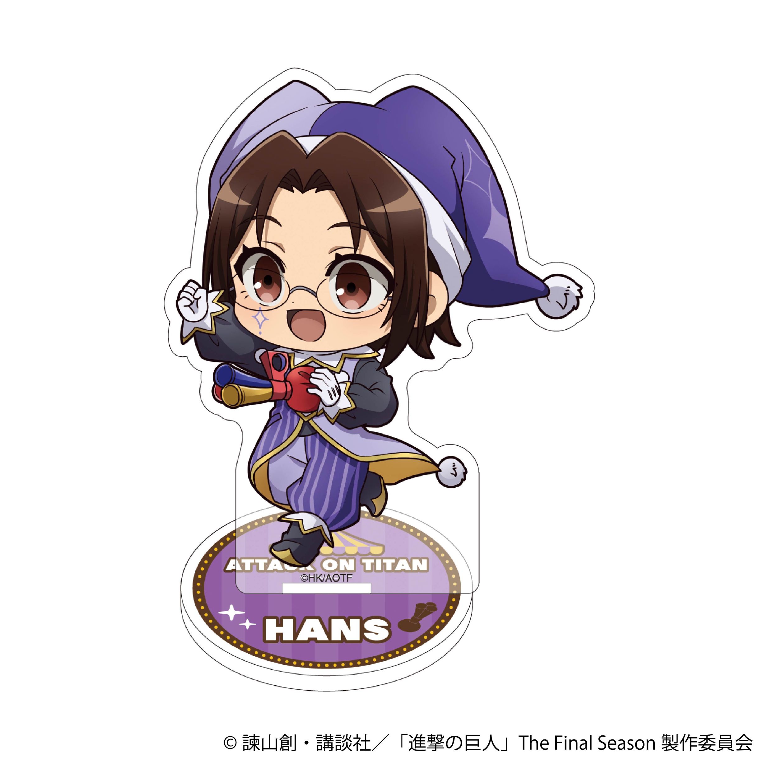 TVアニメ『進撃の巨人』より、可愛いピエロの衣装に身を包んだハンジのミニアクリルスタンドが新登場!お気に入りの場所に飾ってくださいね。