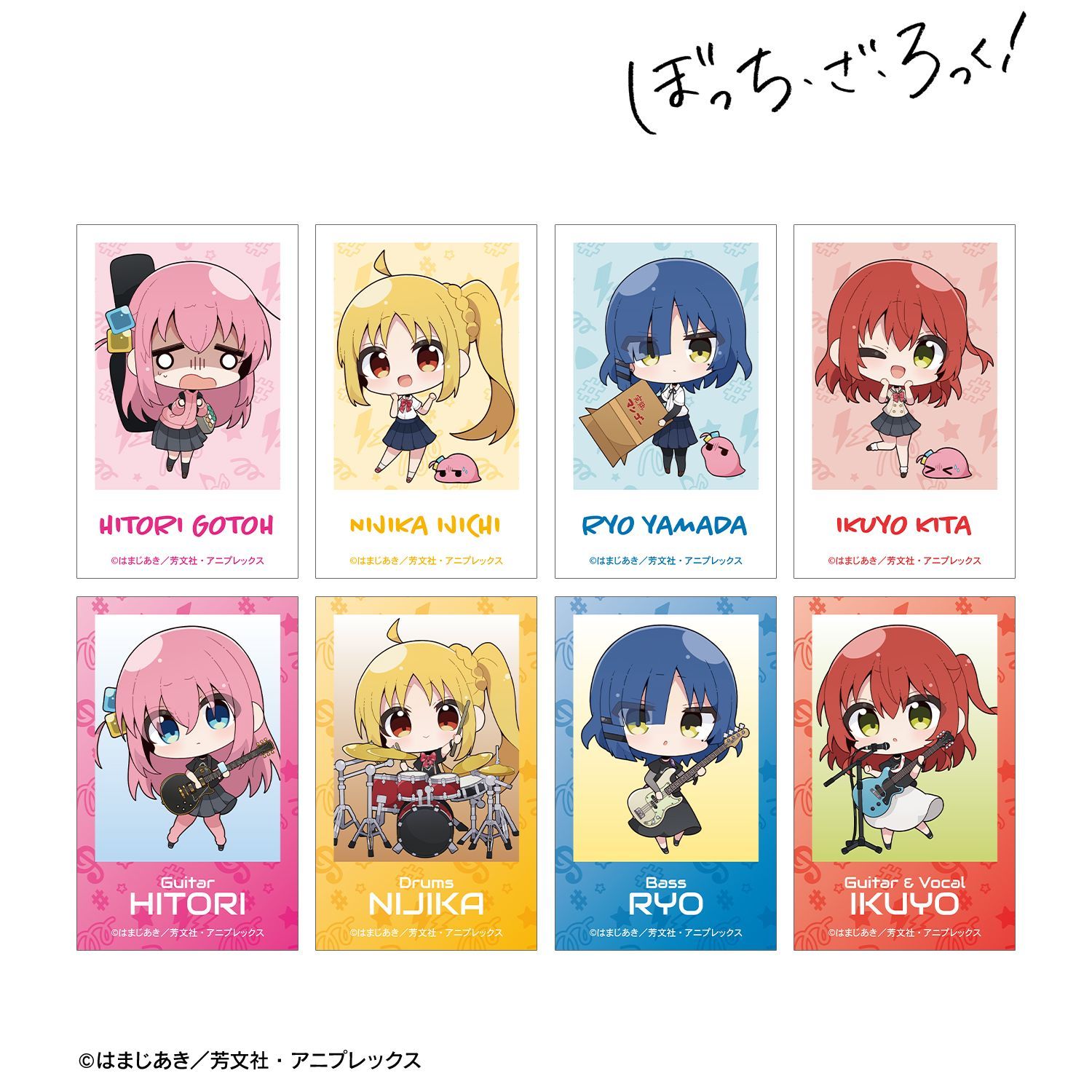 むーらんさん描き起こしイラストの後藤ひとり、伊地知虹夏、山田リョウ、喜多郁代をイラストカードに仕上げました。