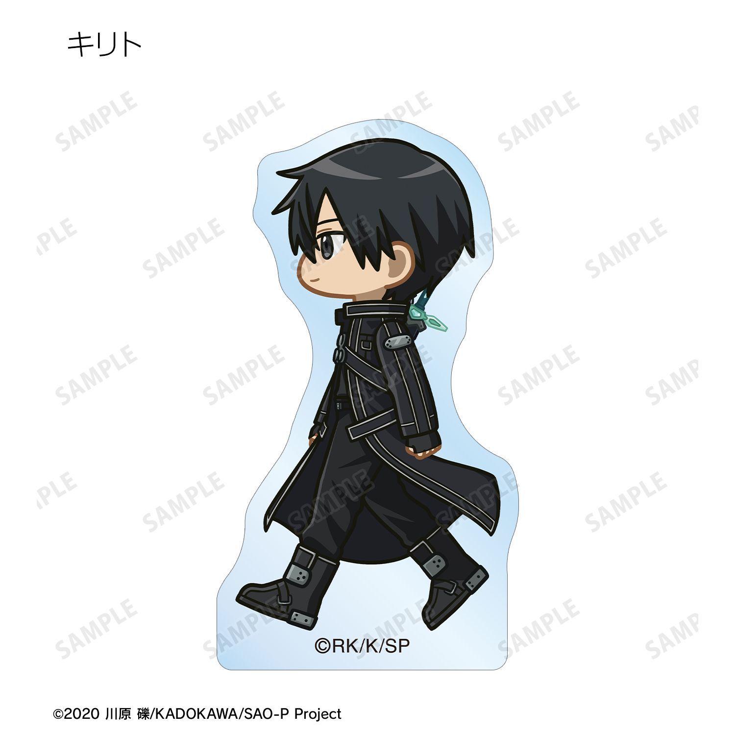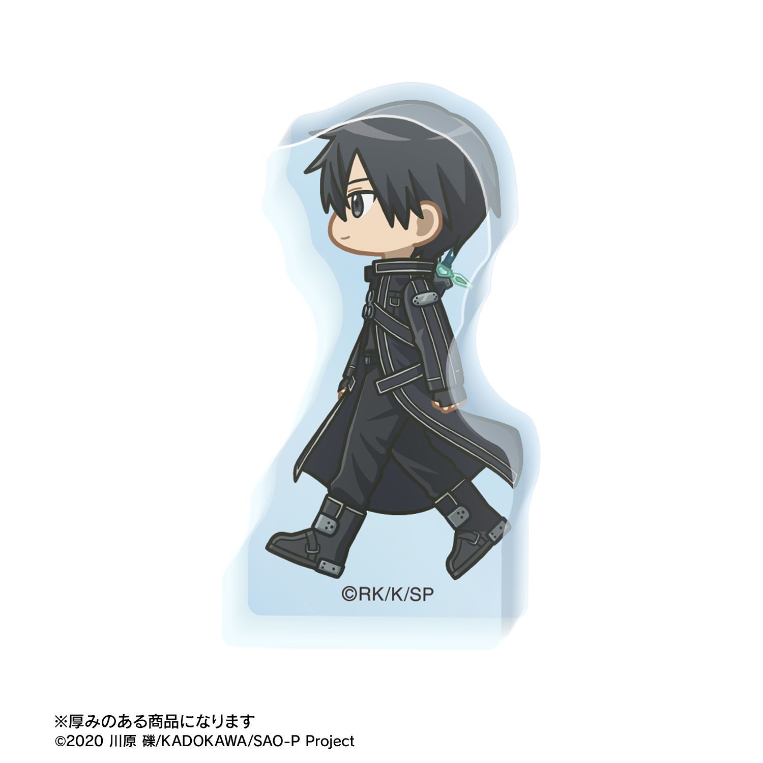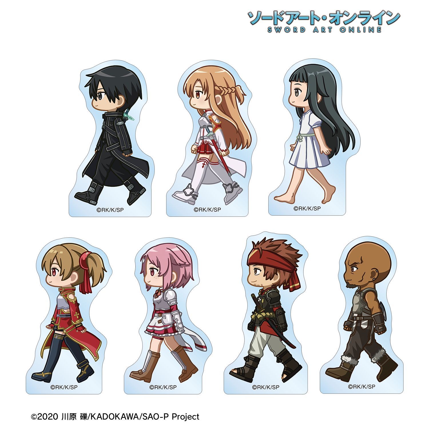 キリト、アスナ、ユイ、シリカ、リズベット、クライン、エギルが歩いているちびキャラを新たに描き起こし、アクリルマスコットに仕上げました。