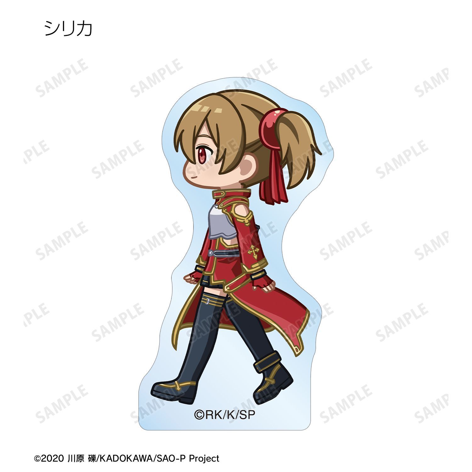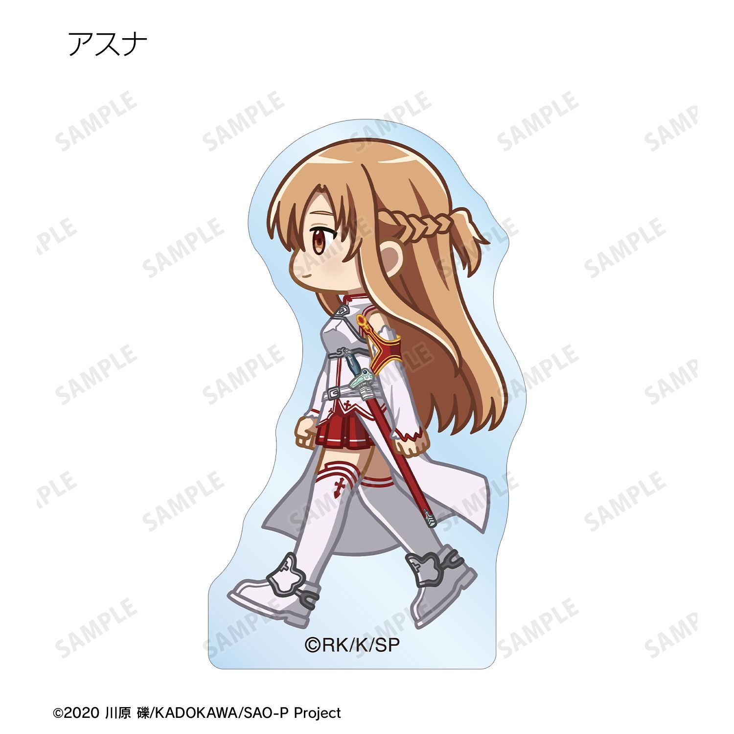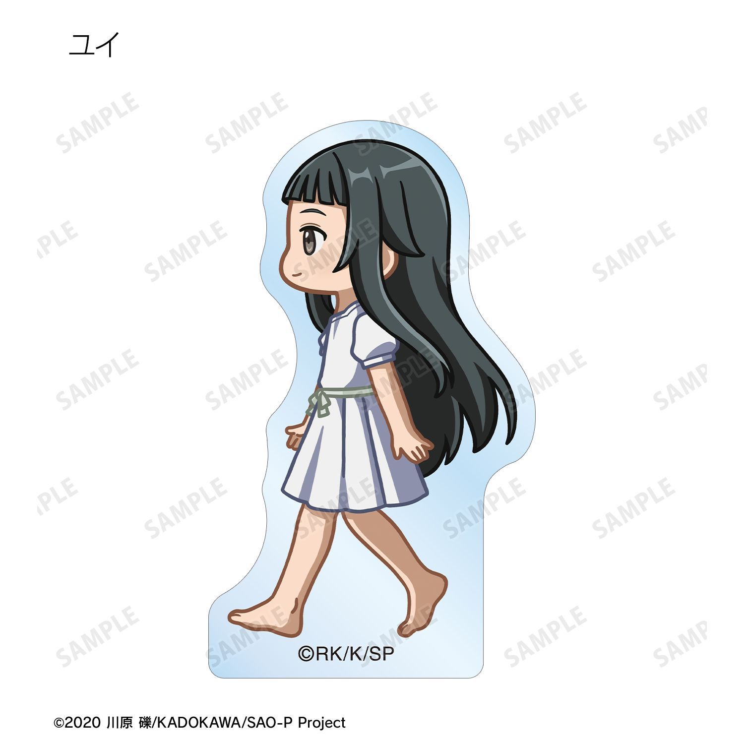 キリト、アスナ、ユイ、シリカ、リズベット、クライン、エギルが歩いているちびキャラを新たに描き起こし、アクリルマスコットに仕上げました。