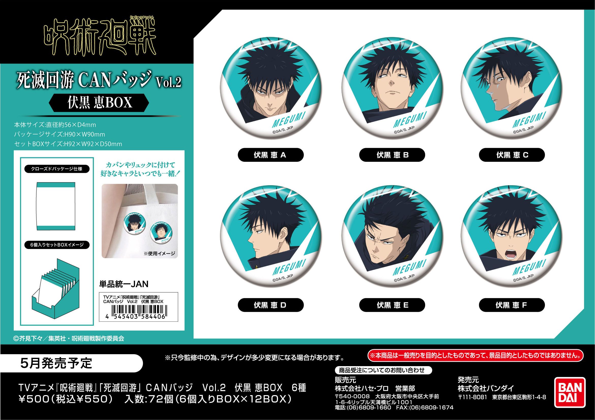 TVアニメ 呪術廻戦 死滅回游 CANバッジVol.2 伏黒 恵BOX 6個入り1BOX
