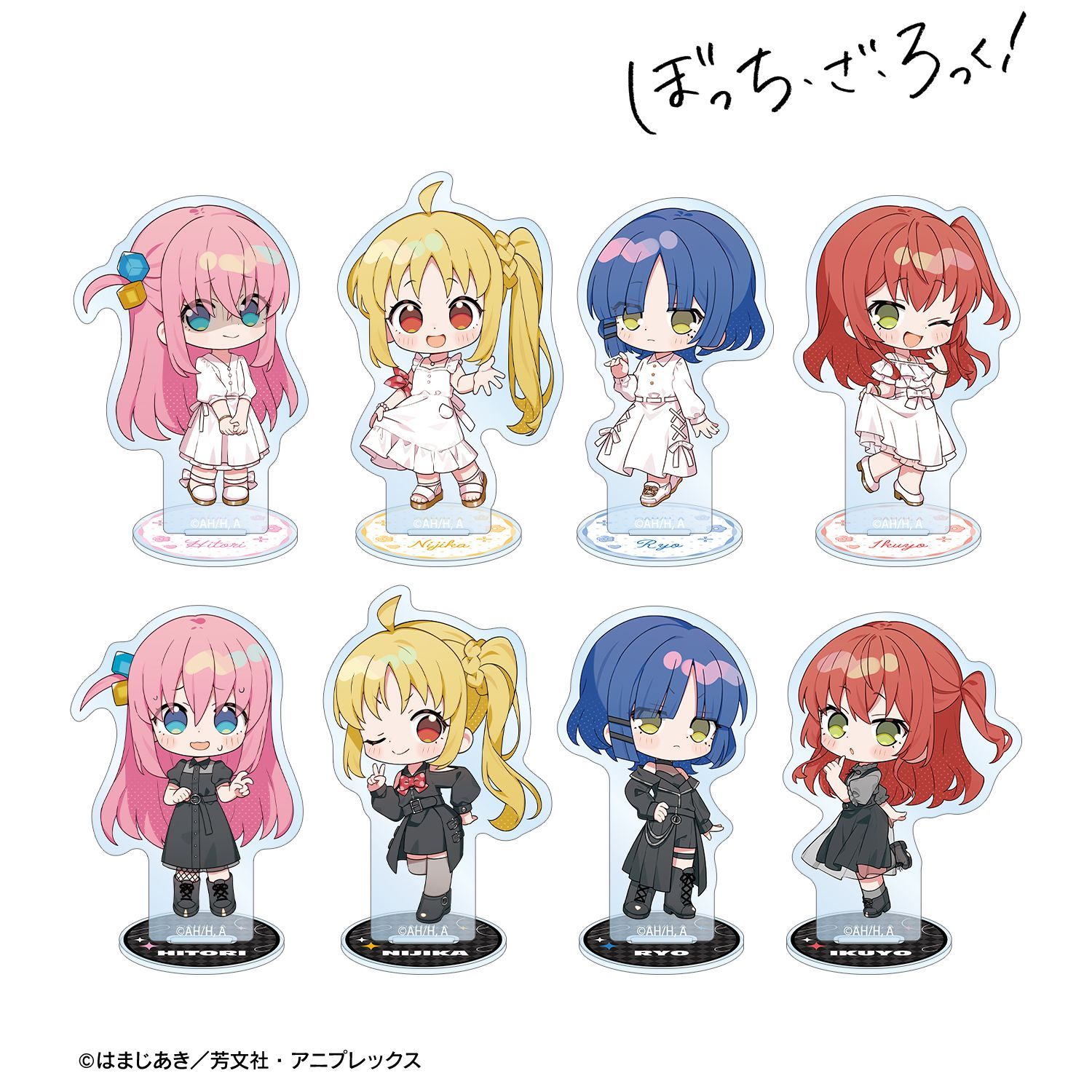 アニメ「ぼっち・ざ・ろっく!」×「上倉エク」のコラボレーションアイテム「上倉エクさんイラスト 白いワンピースver.&黒いワンピースver. トレーディングアクリルスタンド」の登場です。