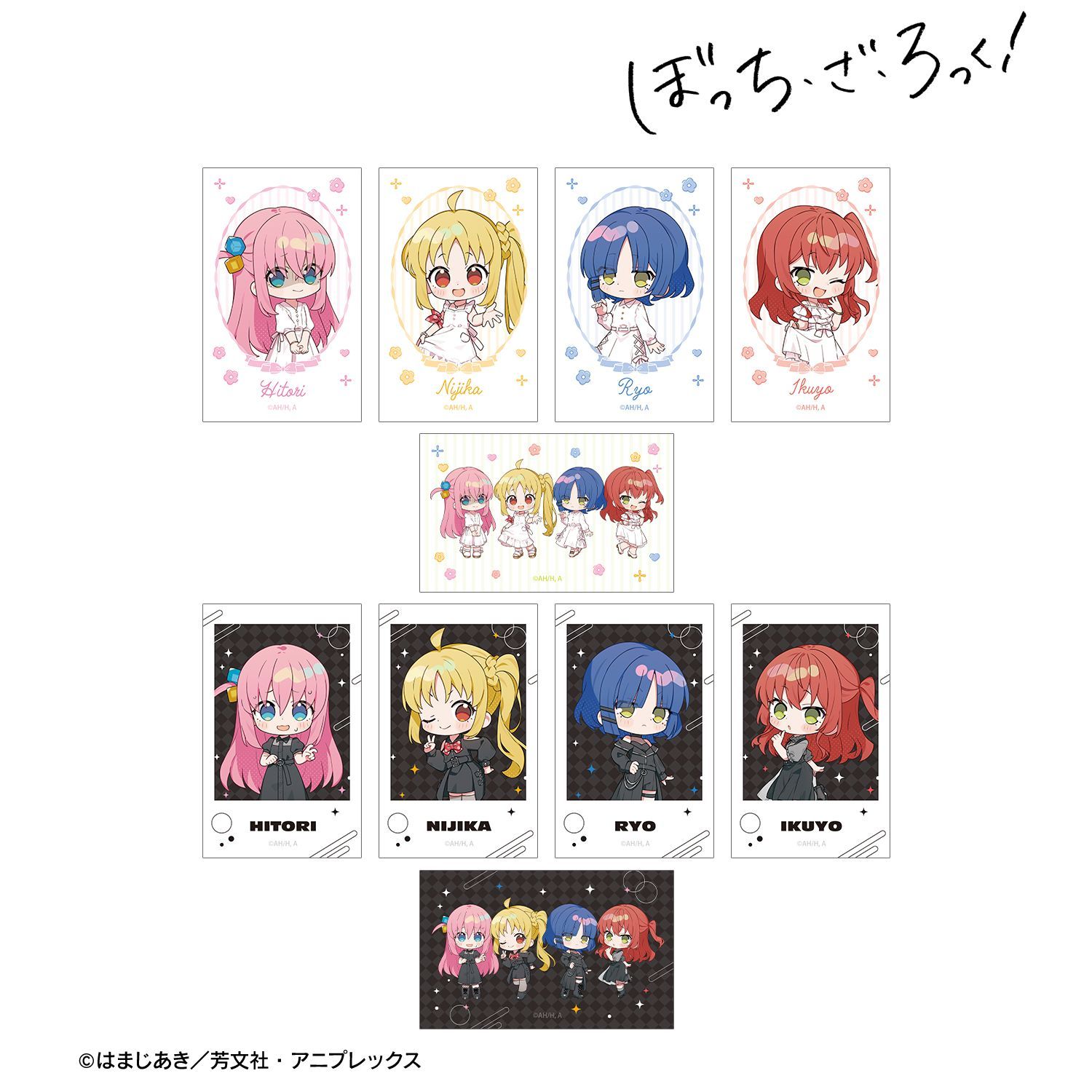 アニメ「ぼっち・ざ・ろっく!」×「上倉エク」のコラボレーションアイテム「上倉エクさんイラスト 白いワンピースver.&黒いワンピースver. トレーディングイラストカード」の登場です。