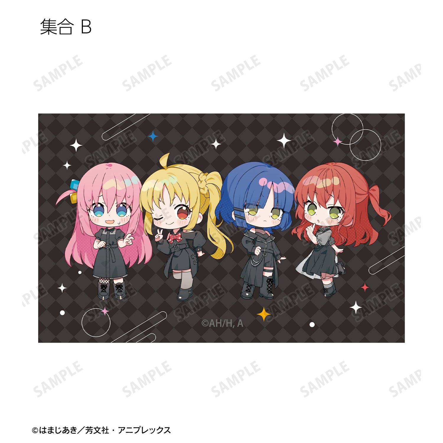 上倉エクさん描き起こしイラストの後藤ひとり、伊地知虹夏、山田リョウ、喜多郁代をイラストカードに仕上げました。