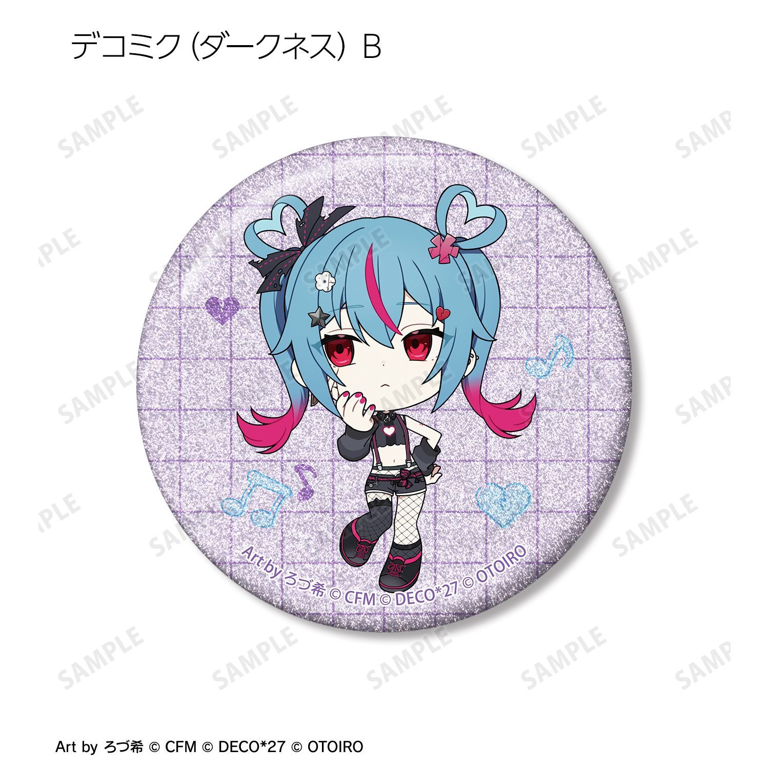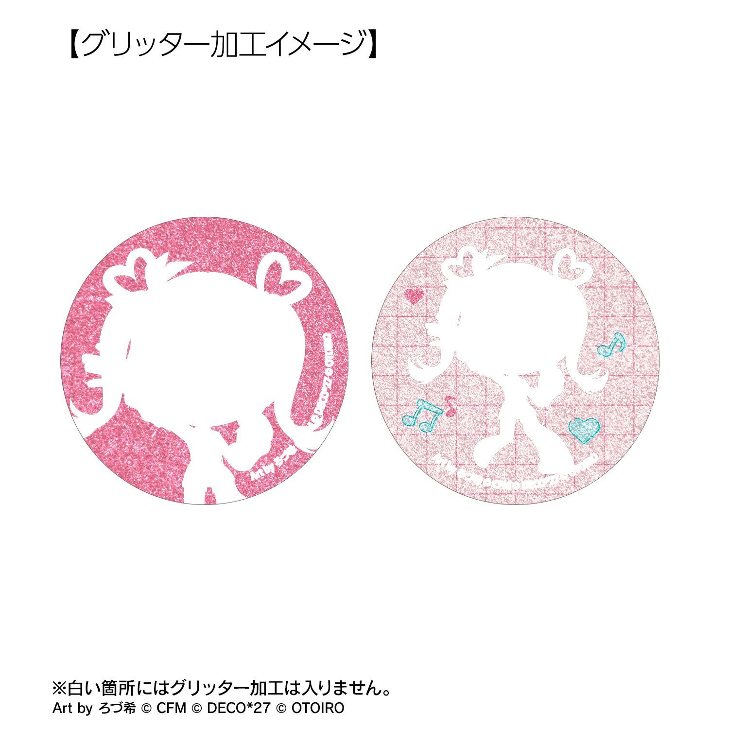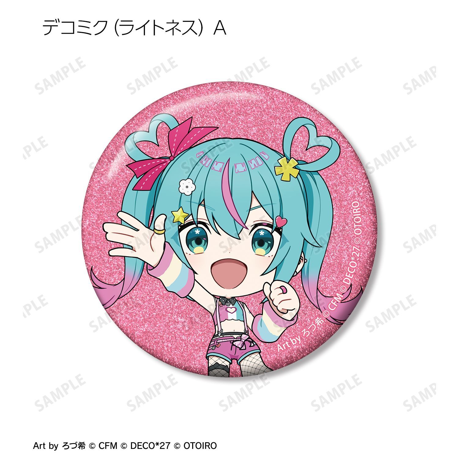 デコミクLIVE starring 初音ミク『Hello』Produced by DECO*27 / OTOIRO×「カラオケの鉄人」のコラボレーションアイテム「ちびキャラ Art by ろづ希 トレーディンググリッター缶バッジ」の登場です。