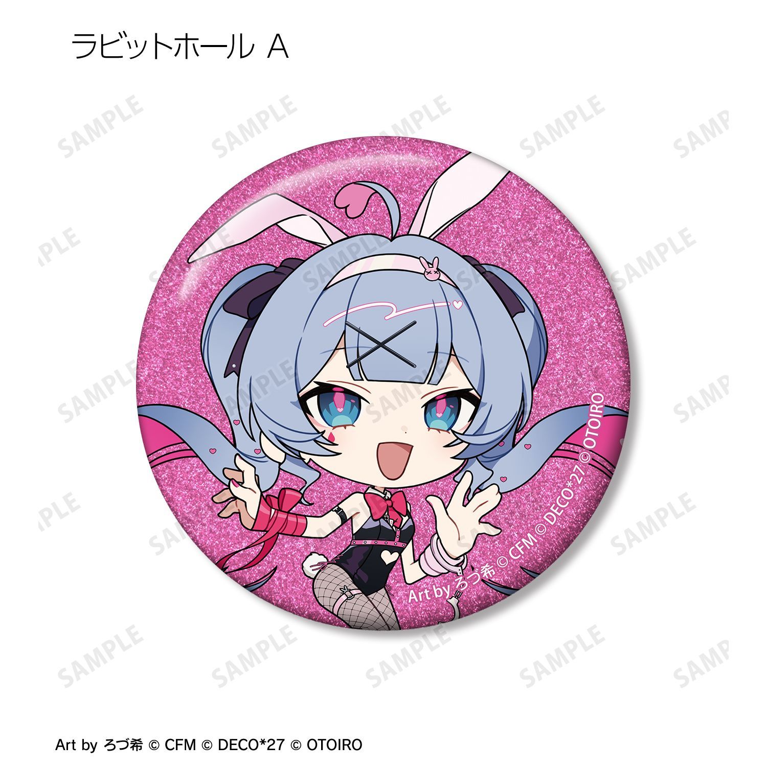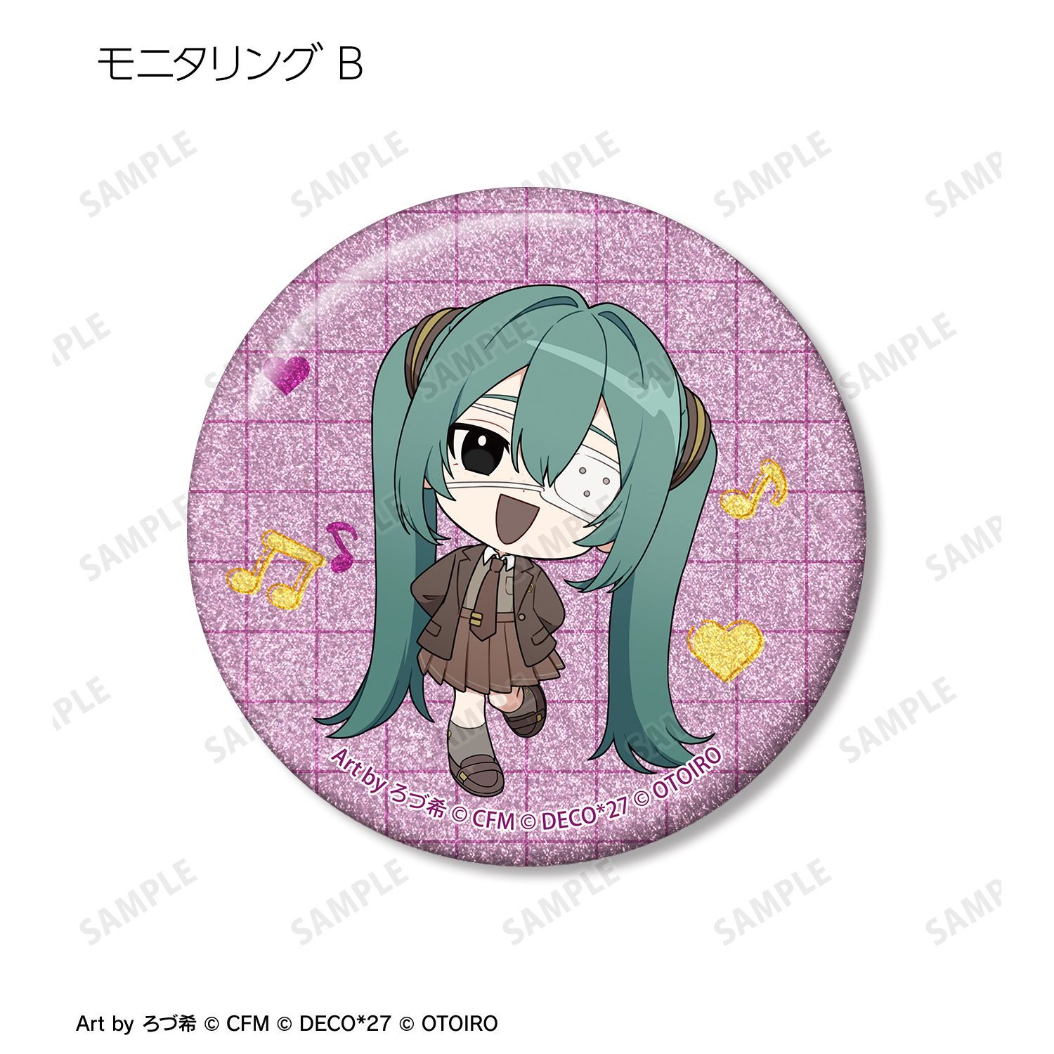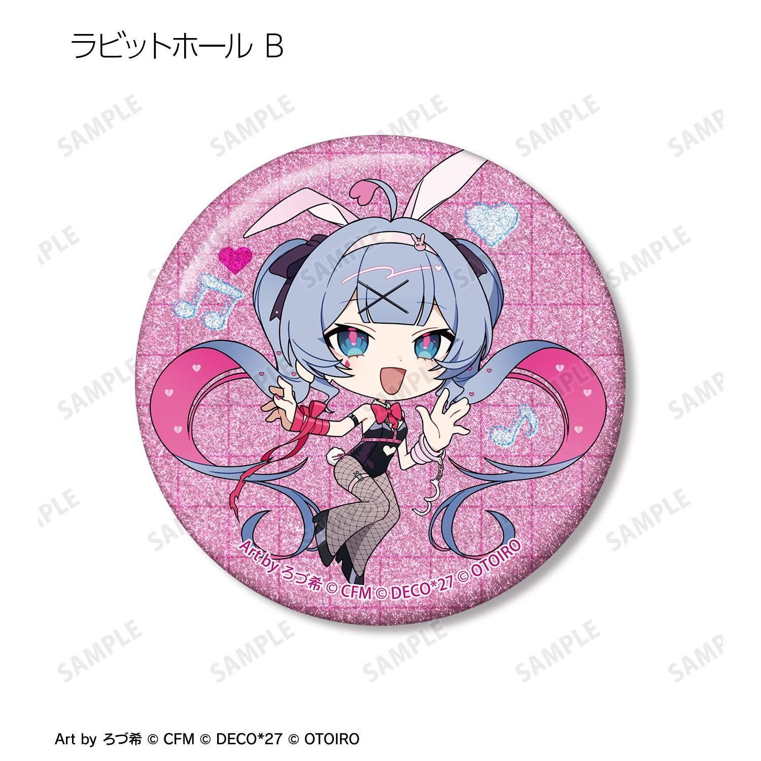 デコミクLIVE starring 初音ミク『Hello』Produced by DECO*27 / OTOIRO×「カラオケの鉄人」のコラボレーションアイテム「ちびキャラ Art by ろづ希 トレーディンググリッター缶バッジ」の登場です。
