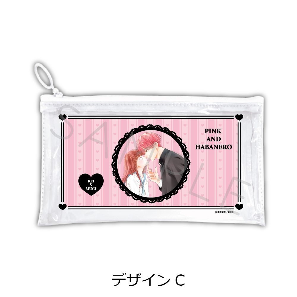 ピンクとハバネロ フラットクリアポーチ デザインC
