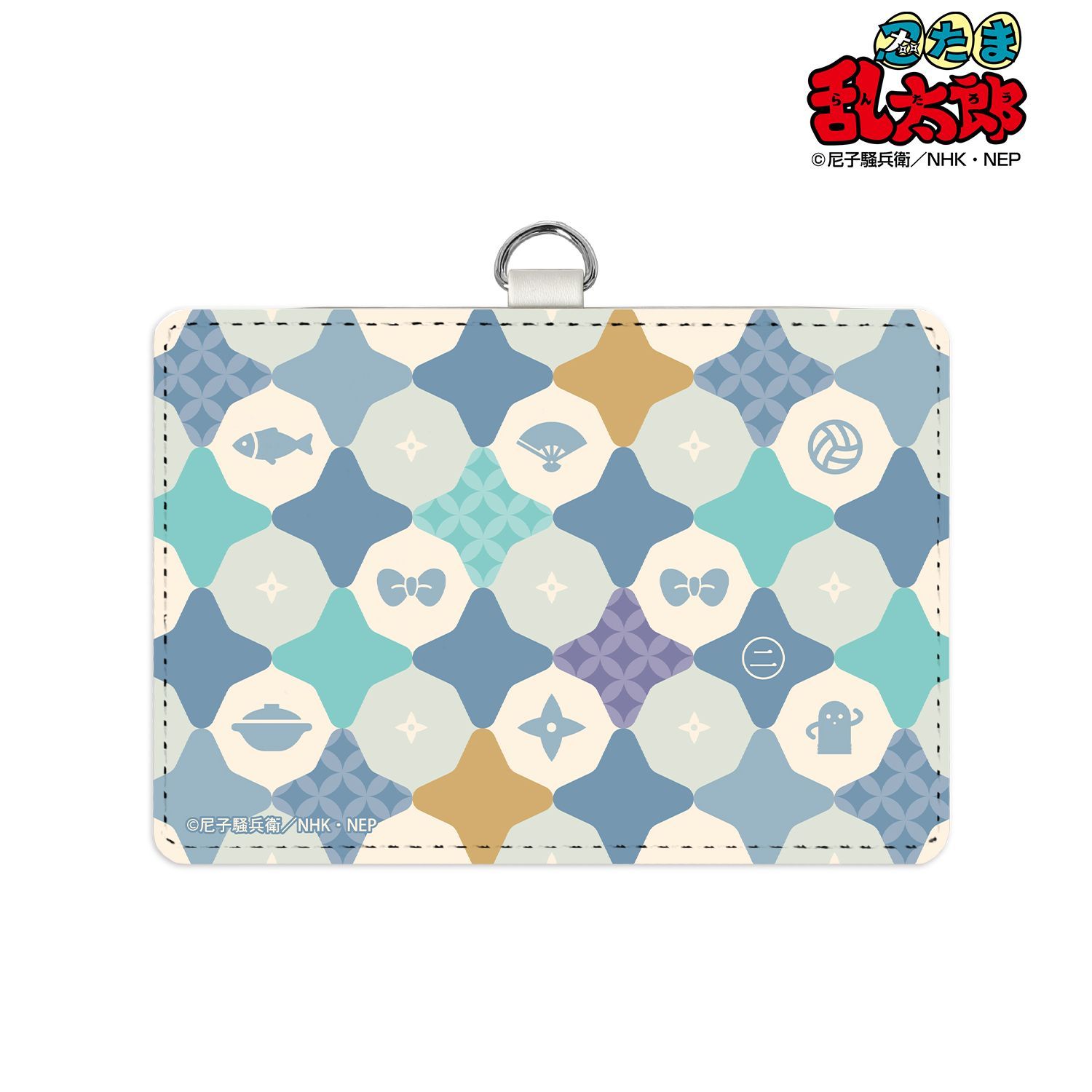 忍たま乱太郎 二年生 モチーフ柄 ネックストラップ付き2ポケットパスケース