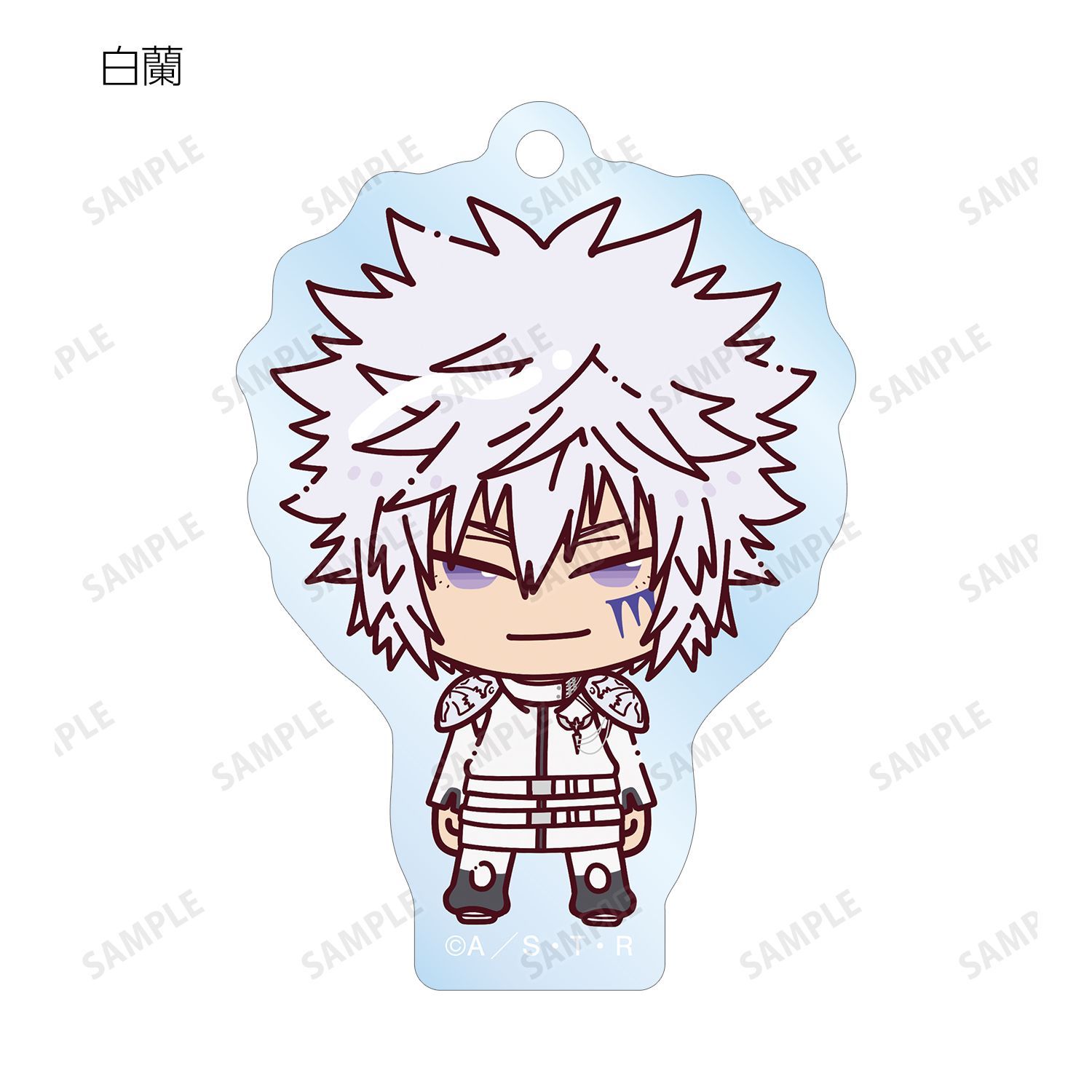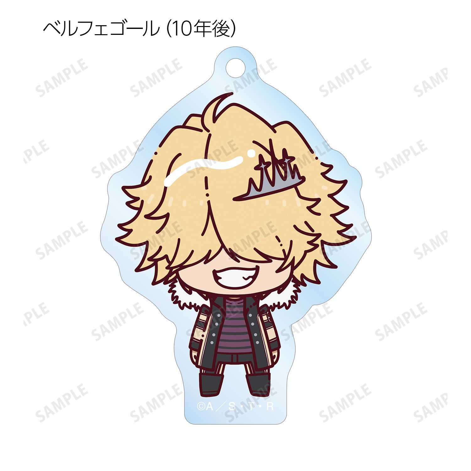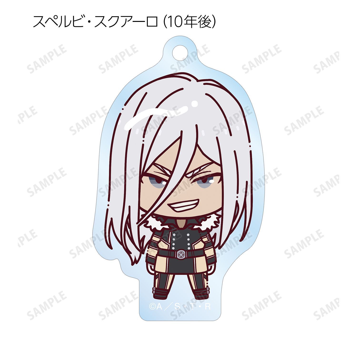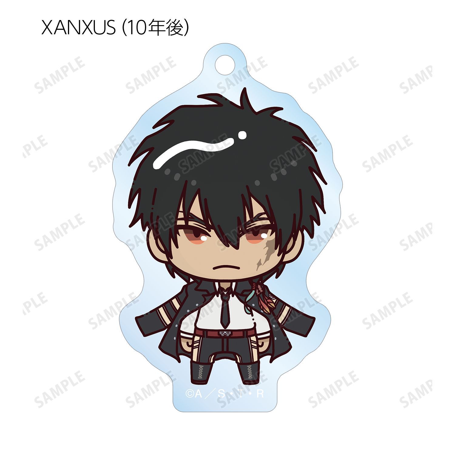 リボーン、沢田 綱吉、獄寺 隼人、山本 武、雲雀 恭弥、六道 骸(10年後)、XANXUS(10年後)、スペルビ・スクアーロ(10年後)、ベルフェゴール(10年後)、フラン、白蘭がちょこんと立っているちびキャラを新たに描き起こし、アクリルキーホルダーに仕上げました。