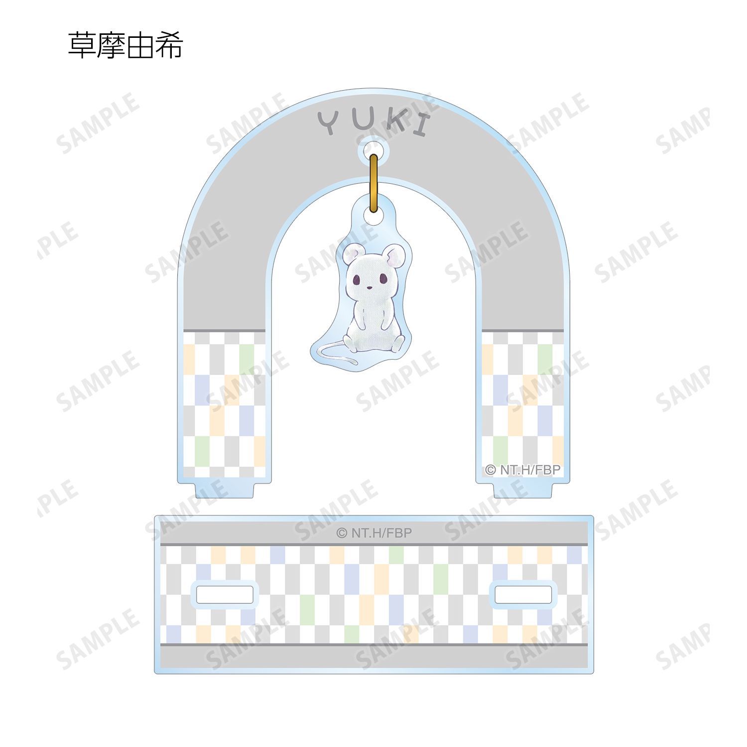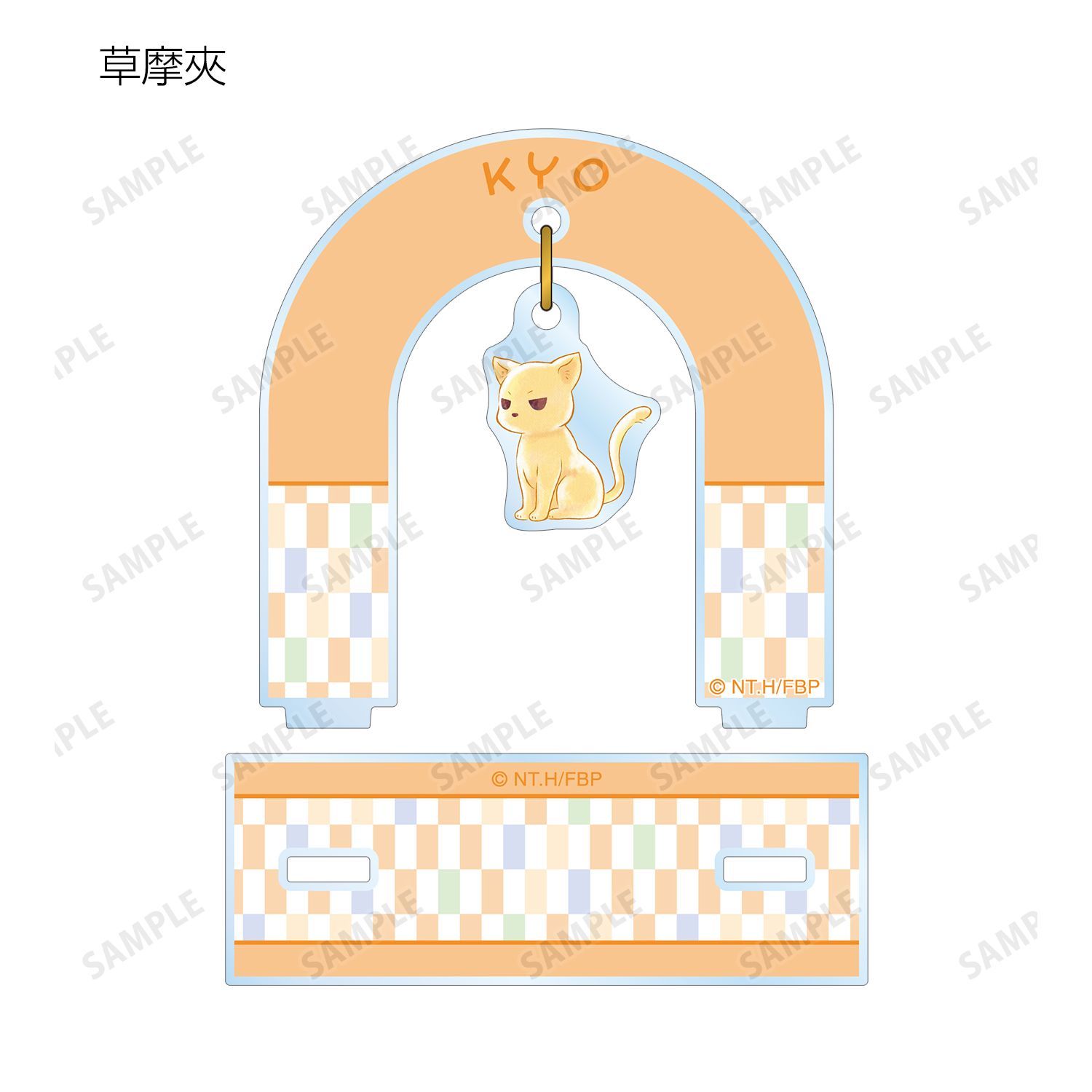 本田透、草摩由希、草摩夾、草摩紫呉、草摩楽羅、草摩紅葉、草摩はつ春、草摩はとり、草摩綾女、草摩杞紗、草摩燈路、草摩利津、草摩依鈴、草摩紅野が動物に変身した姿の描き起こしちびキャライラストをメインにゆらゆら動くアクリルスタンドに仕上げました。