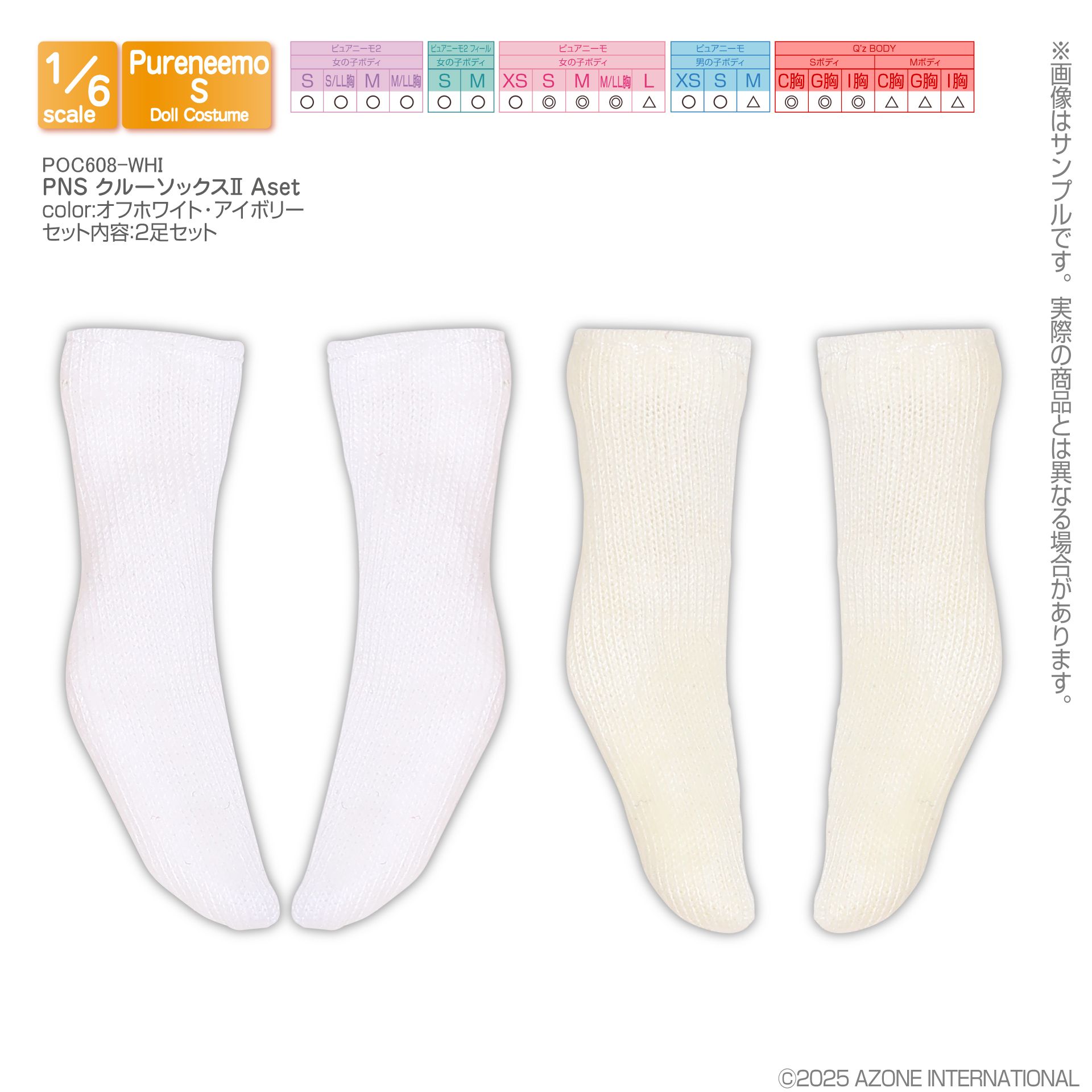 アゾン 1/6スケール用ウェア PNS クルーソックスII Aset オフホワイト・アイボリー