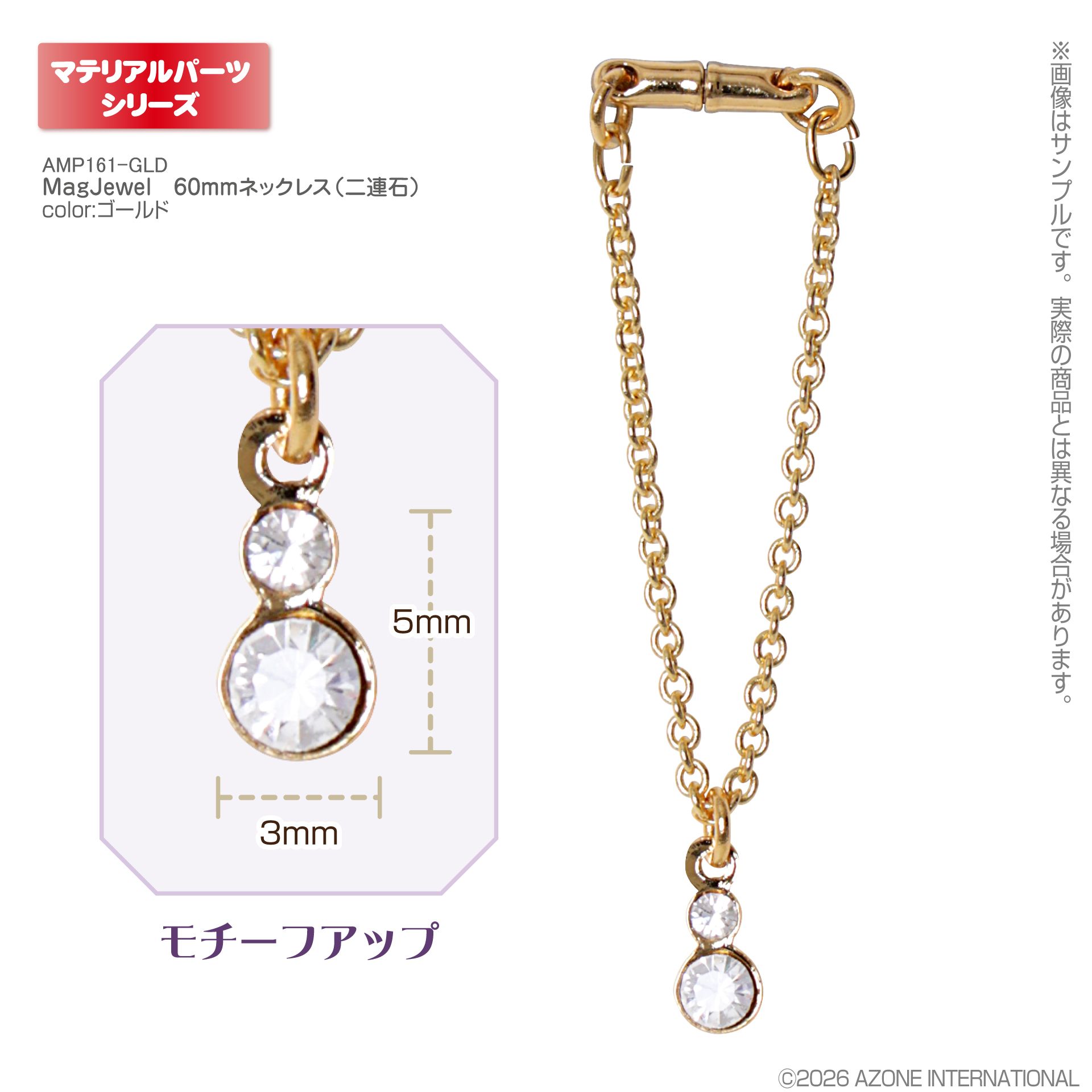 アゾン マテリアルパーツ/AMP マグジュエル ネックレス MagJewel 60mmネックレス(二連石) ゴールド