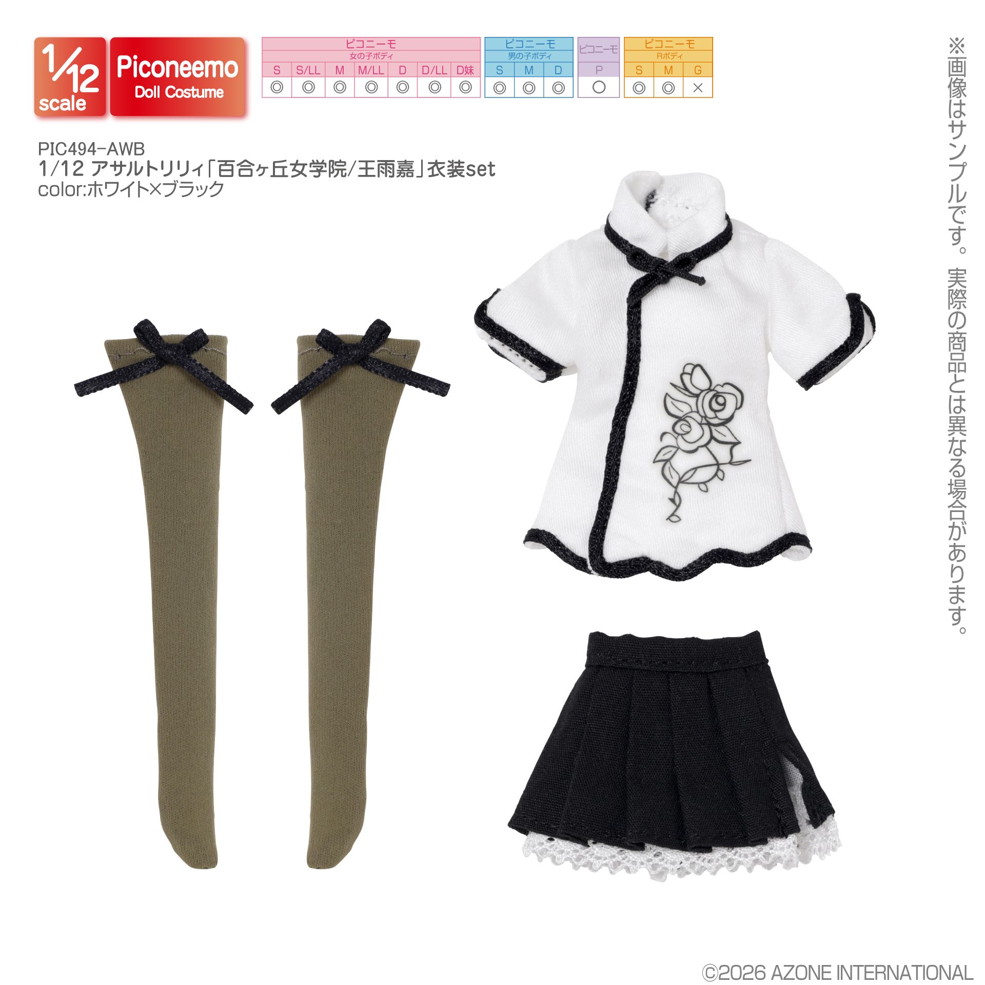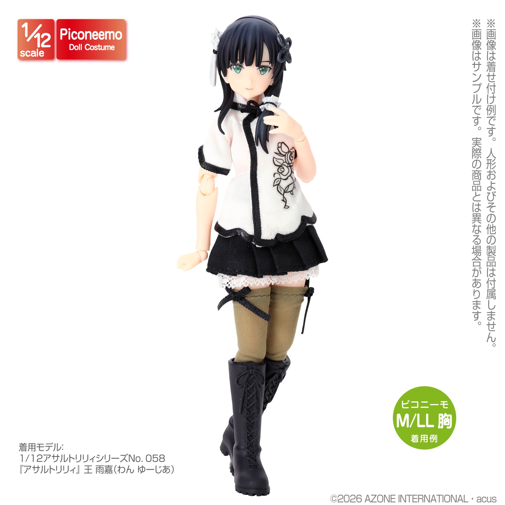アゾン 1/12スケール用ウェア アサルトリリィ 百合ヶ丘女学院/王雨嘉 衣装set ホワイト×ブラック