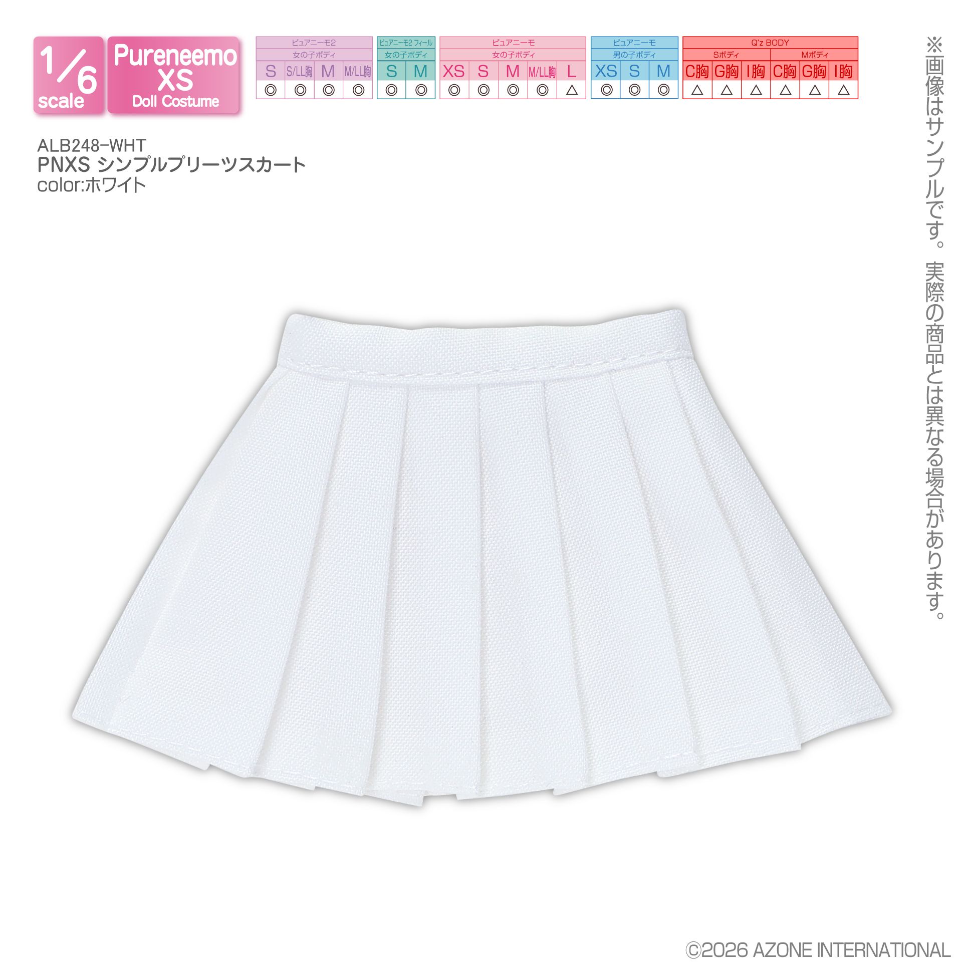 アゾン 1/6スケール用ウェア PNXS シンプルプリーツスカート ホワイト