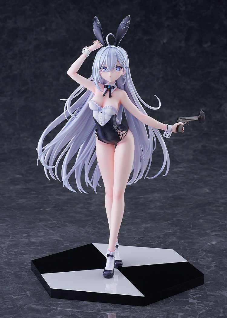 このフィギュアのために描き下ろされたイラストをもとに、バニー耳を気にしてそっとつまみ、ほんのりと頬を染めながらこちらを見つめる青い瞳や風に揺れる長い髪など、幽鬼の繊細で儚げな魅力を丁寧に造形しました。
