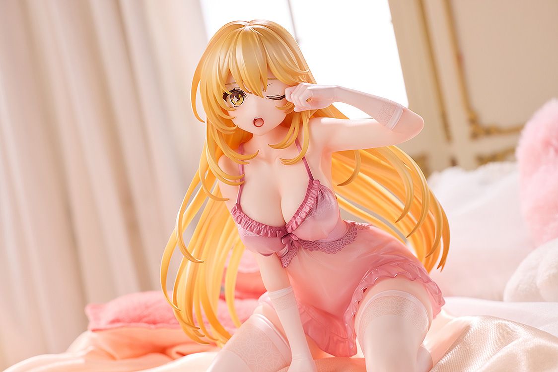 淡いピンク色のネグリジェに蜘蛛の巣の模様をあしらい、特徴的なキラキラ目はもちろん、いたずらっぽく舌を出した表情&ピースポーズを可愛らしく立体化しました。