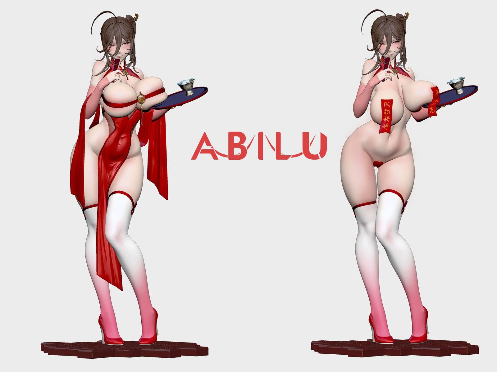 胸部には「?韵娉?」と「量大管飽」(いずれも豊満で魅力的な胸やボディラインを表す言葉)と書かれた符紙があしらわれており、東洋的な雰囲気を演出します。