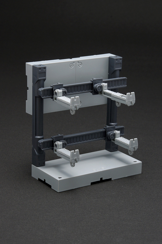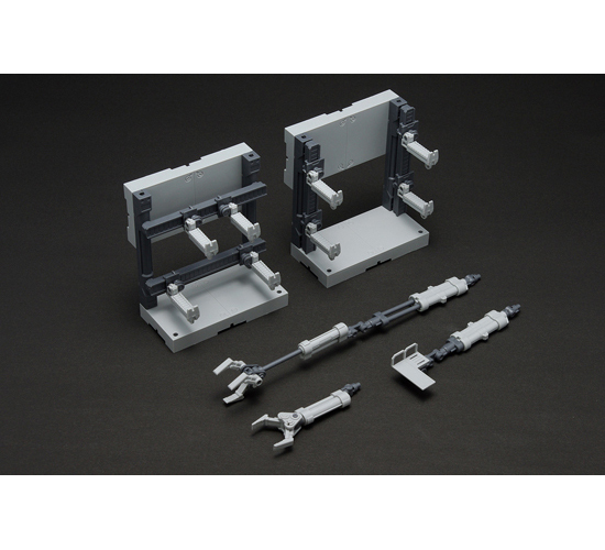 セットは、先端部分を作業台、マニピュレーターいずれかに選択するこができる「作業用アーム」と、武器や様々な装備品を飾れる「武器マウント」といった内容。