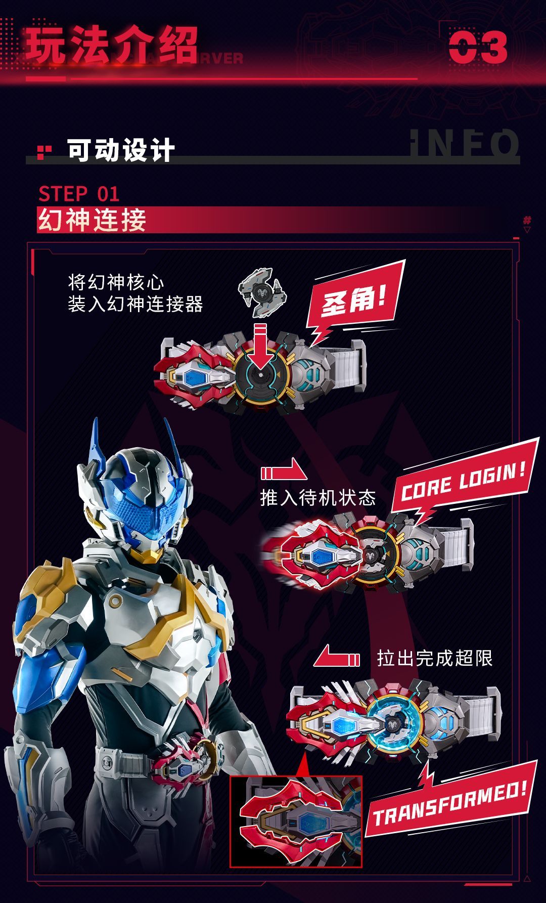 劇中設定を忠実に再現し、コアとのリンクによる「超限起動」を完全再現!