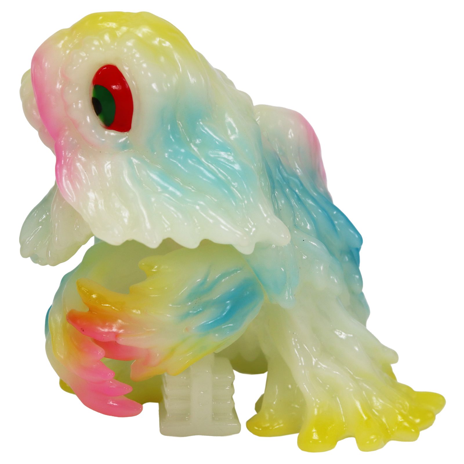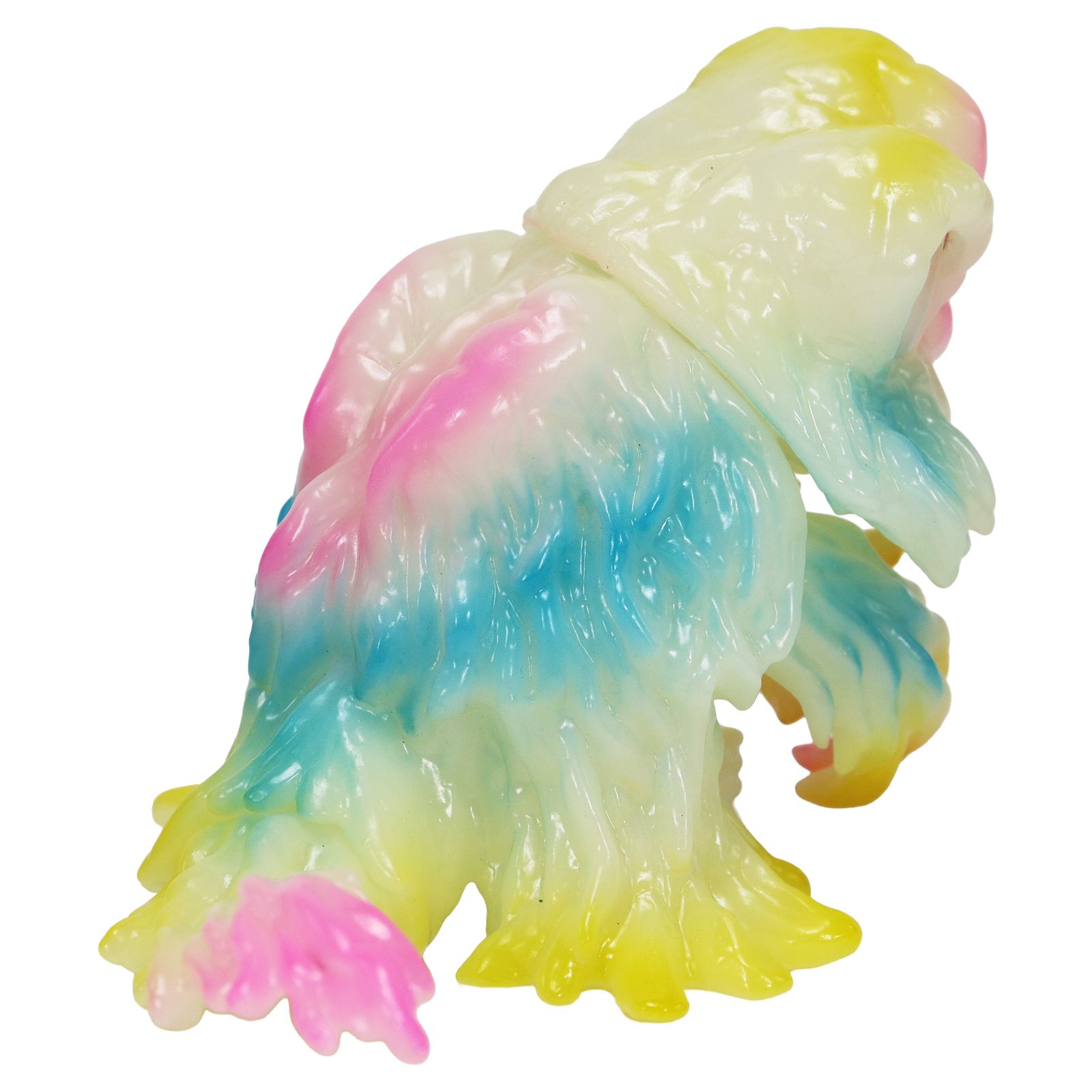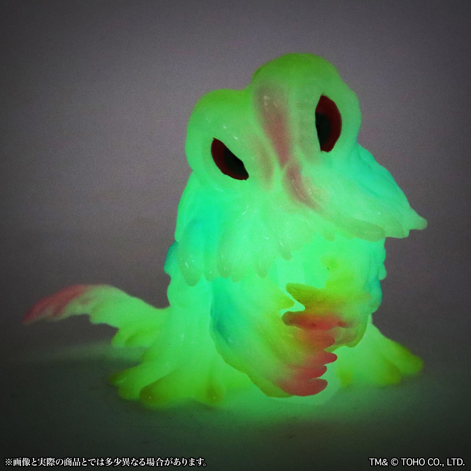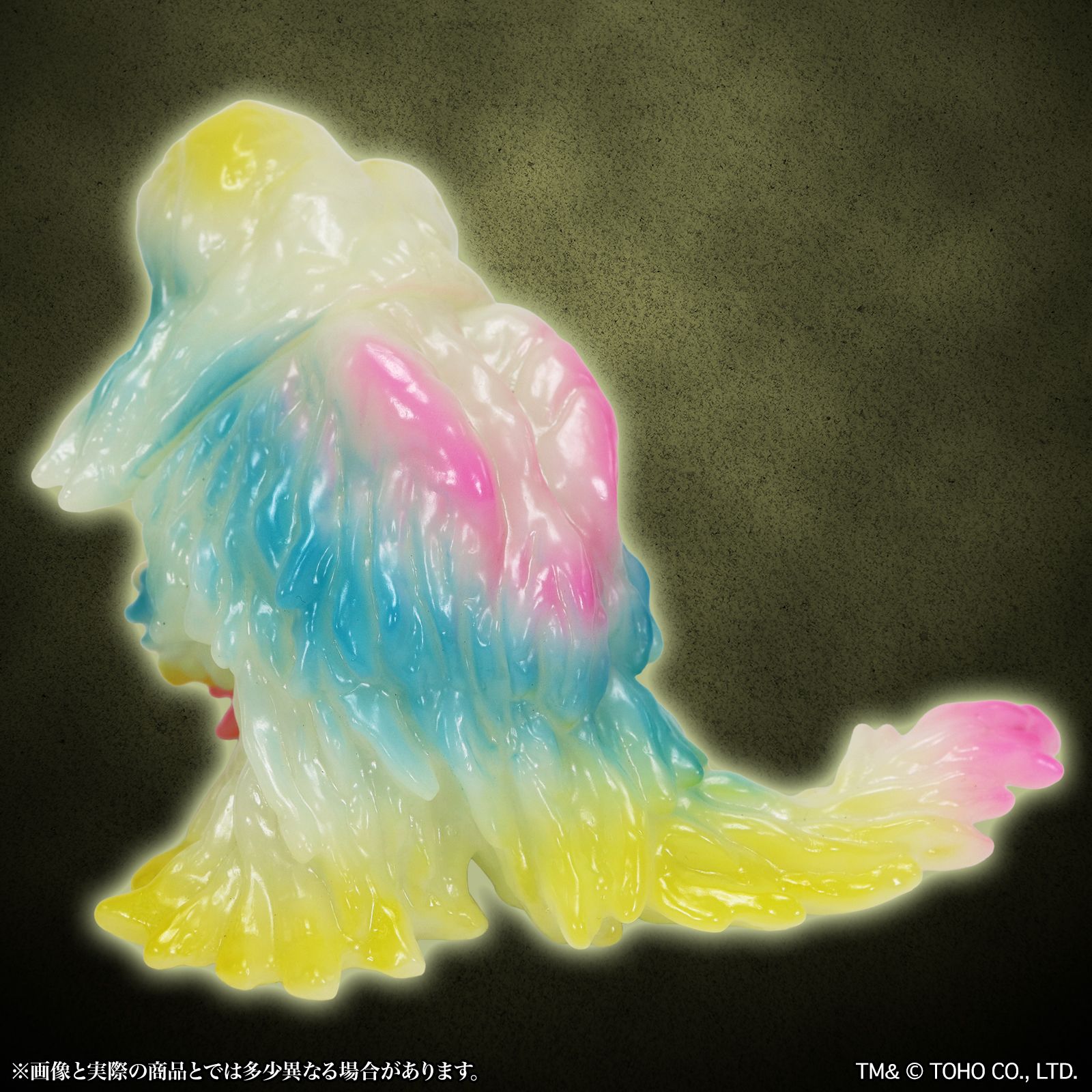 暗闇で光る蓄光素材のソフビに、通常のヘドラでも人気であった複数のクリアカラーによる鮮やかなレトロポップなカラーリングで彩色。