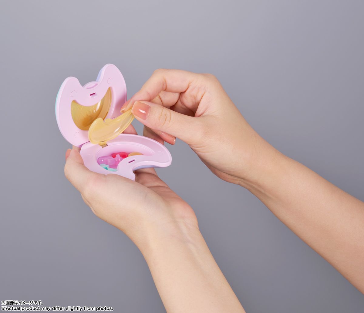 アニメに登場するステッキとコンパクトを、約1/1サイズで、造形とともに設定に忠実に再現。