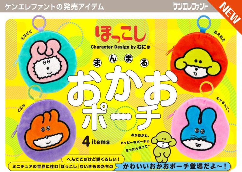ミニチュアの世界に住む『ぽっこし』ないきものたちのかわいい“おかおポーチ”登場だよ~!