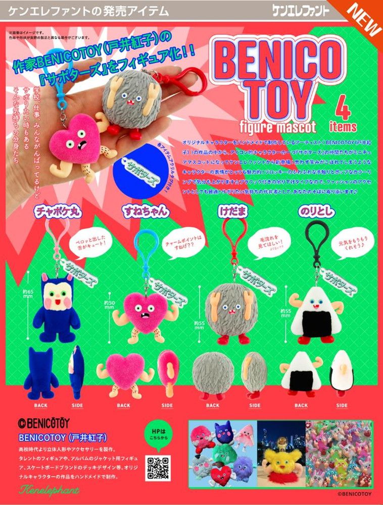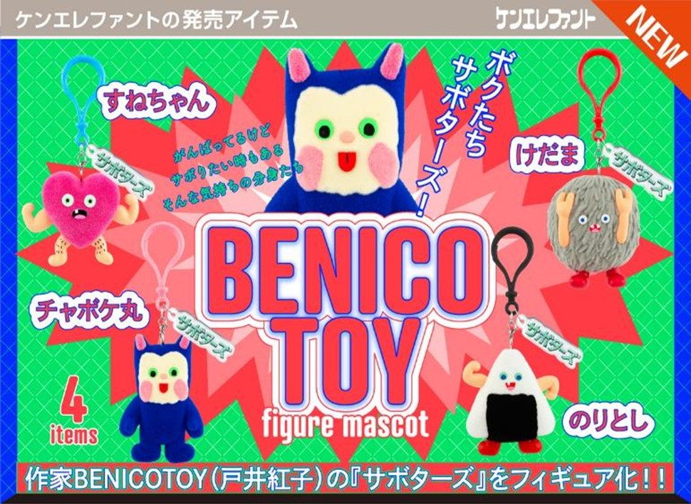 オリジナルキャラクターをハンドメイドで製作しているアーティスト〈BENICOTOY(戸井紅子)〉の作品の中から、アイコン的キャラクターの一つ「サボターズ」の仲間たちがミニチュアマスコットになってケンエレファントから新登場!