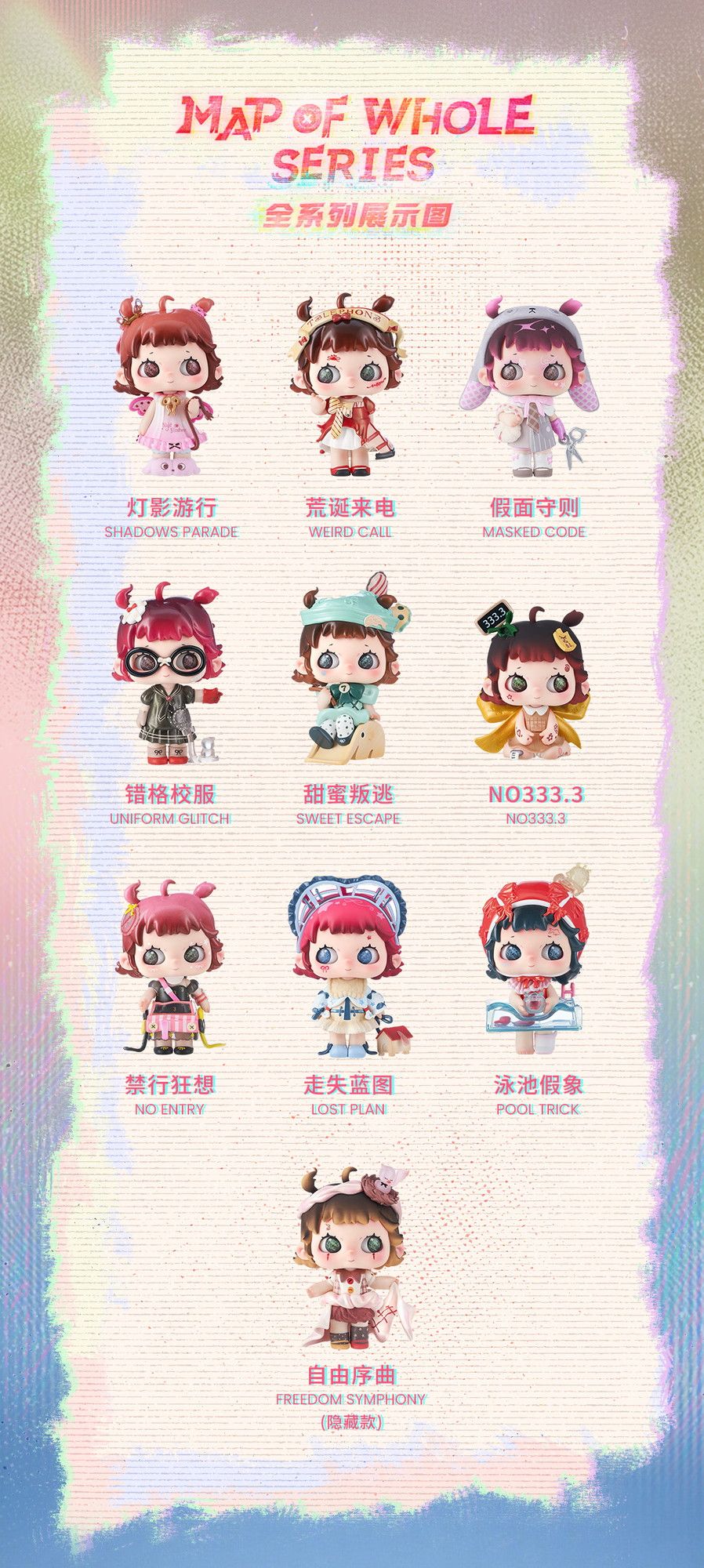 デザイナーズトイメーカーHeyone社より、オリジナルトレーディングフィギュアセット『33R3NA(レナ) 笑劇シリーズ』をお届けします!Heyoneの新キャラクター、33R3NAが登場!
