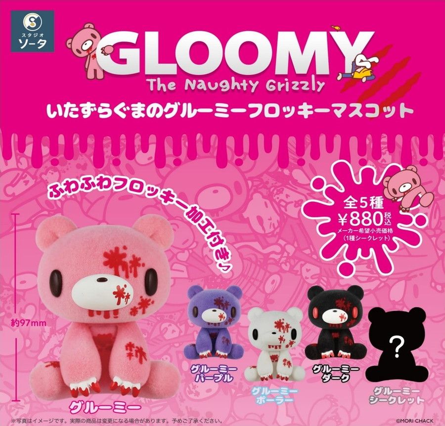 ぬいぐるみのようなふわふわフロッキー仕様のフィギュアで、おすわりポーズがかわいいグルーミー達がラインアップ。