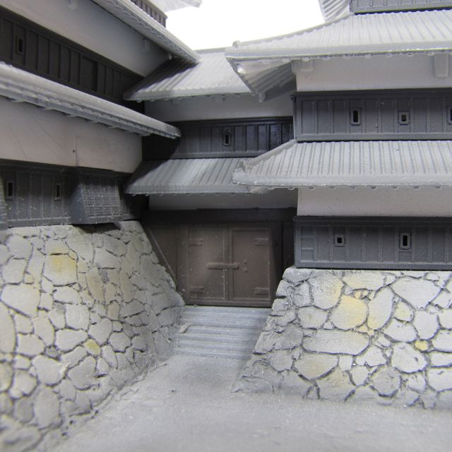 屋根や壁面・石垣等は成形色による色分けをしておりますので、組み立てるだけで美しい仕上がりとなります。