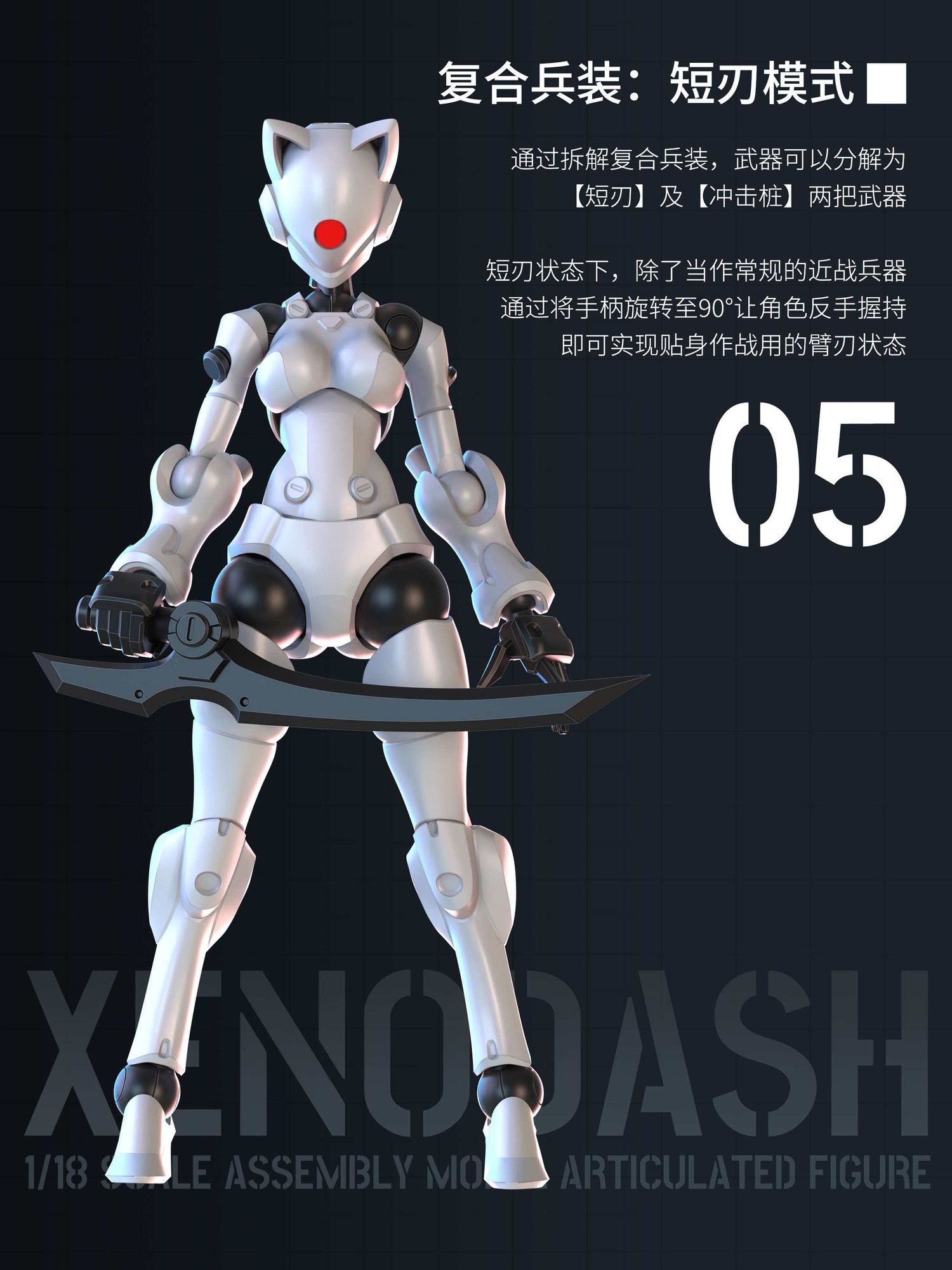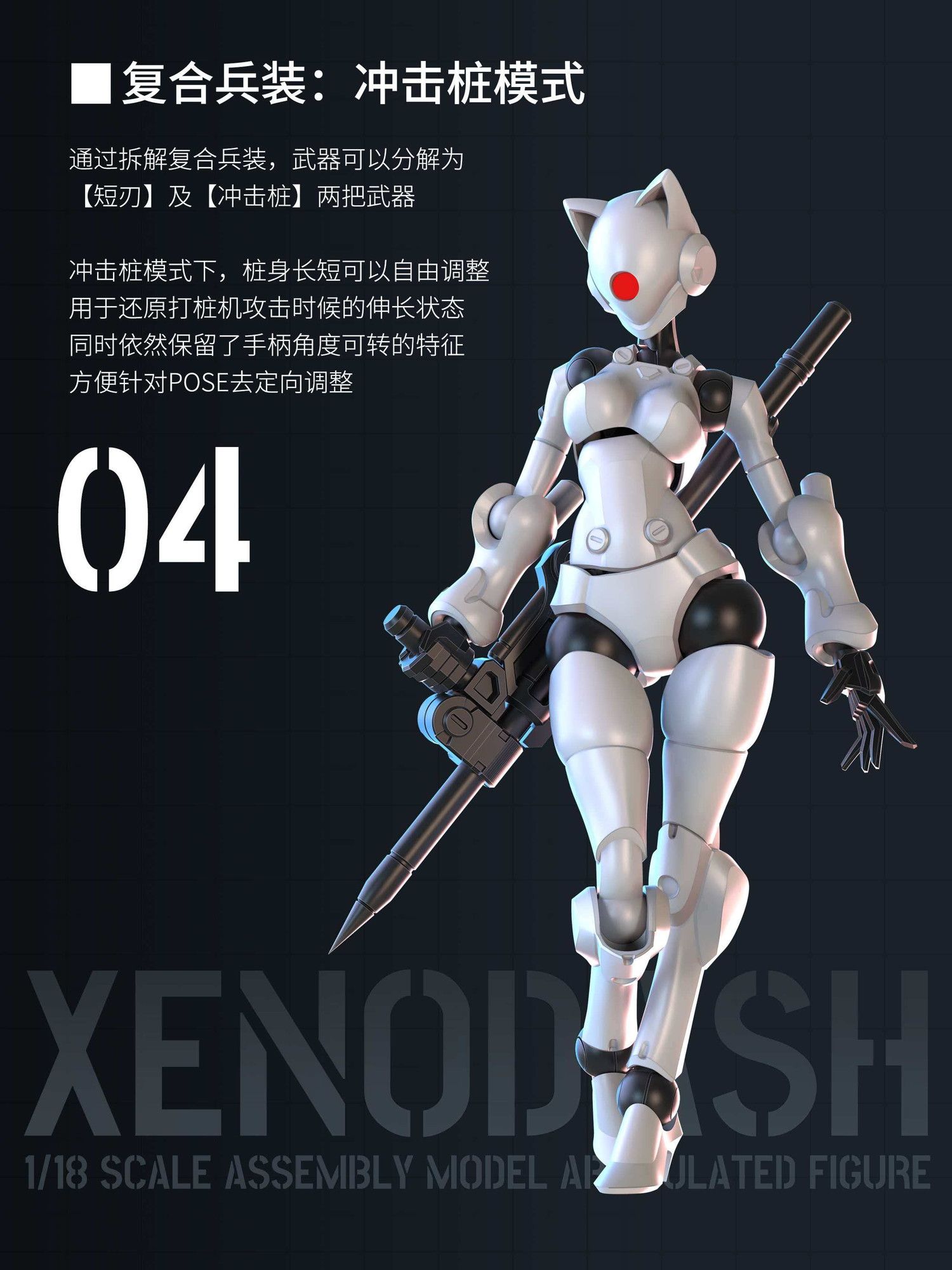 猫耳を備えたスタイリッシュなロボネコ娘デザインが特徴。