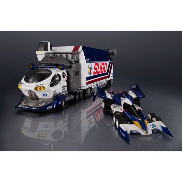 サイバーフォーミュラコレクション-Heritage Edition-シリーズに、スゴウアスラーダ・チームのトランスポーター「スゴウレガード10V5000」と[スーパーアスラーダ01 サーキットモード」が豪華セットになって登場!!