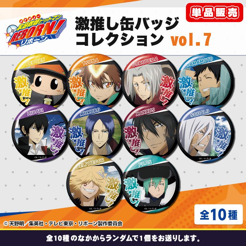 TVアニメ『家庭教師ヒットマンREBORN!』から、インパクトのある「激推し」デザインの缶バッジコレクション第7弾が登場!