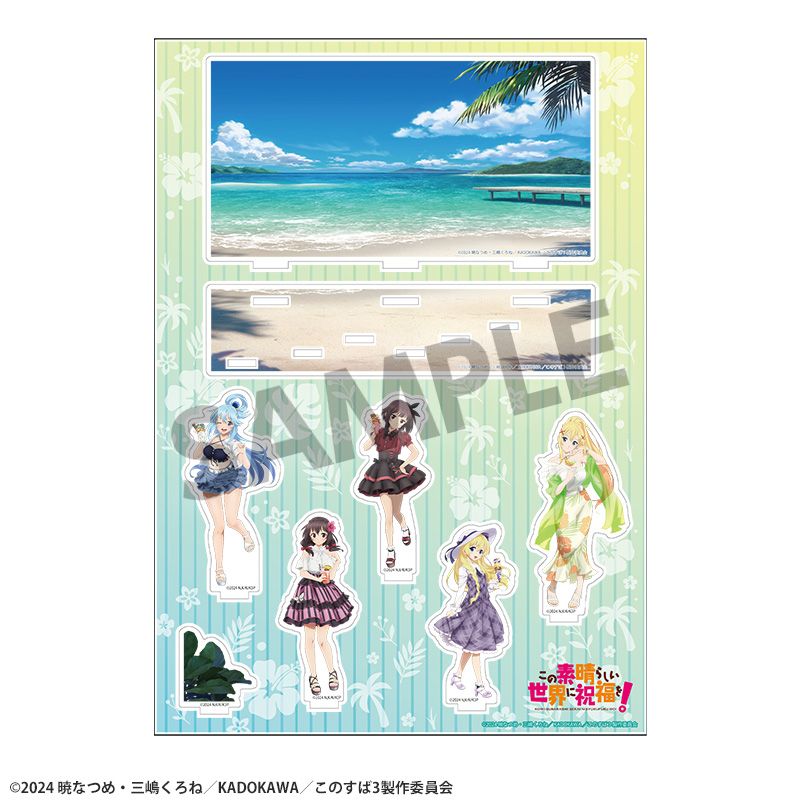 アニメ『この素晴らしい世界に祝福を!』から、バカンスがコンセプトの新規描き下ろしイラストを使用した背景付きアクリルスタンドが登場!